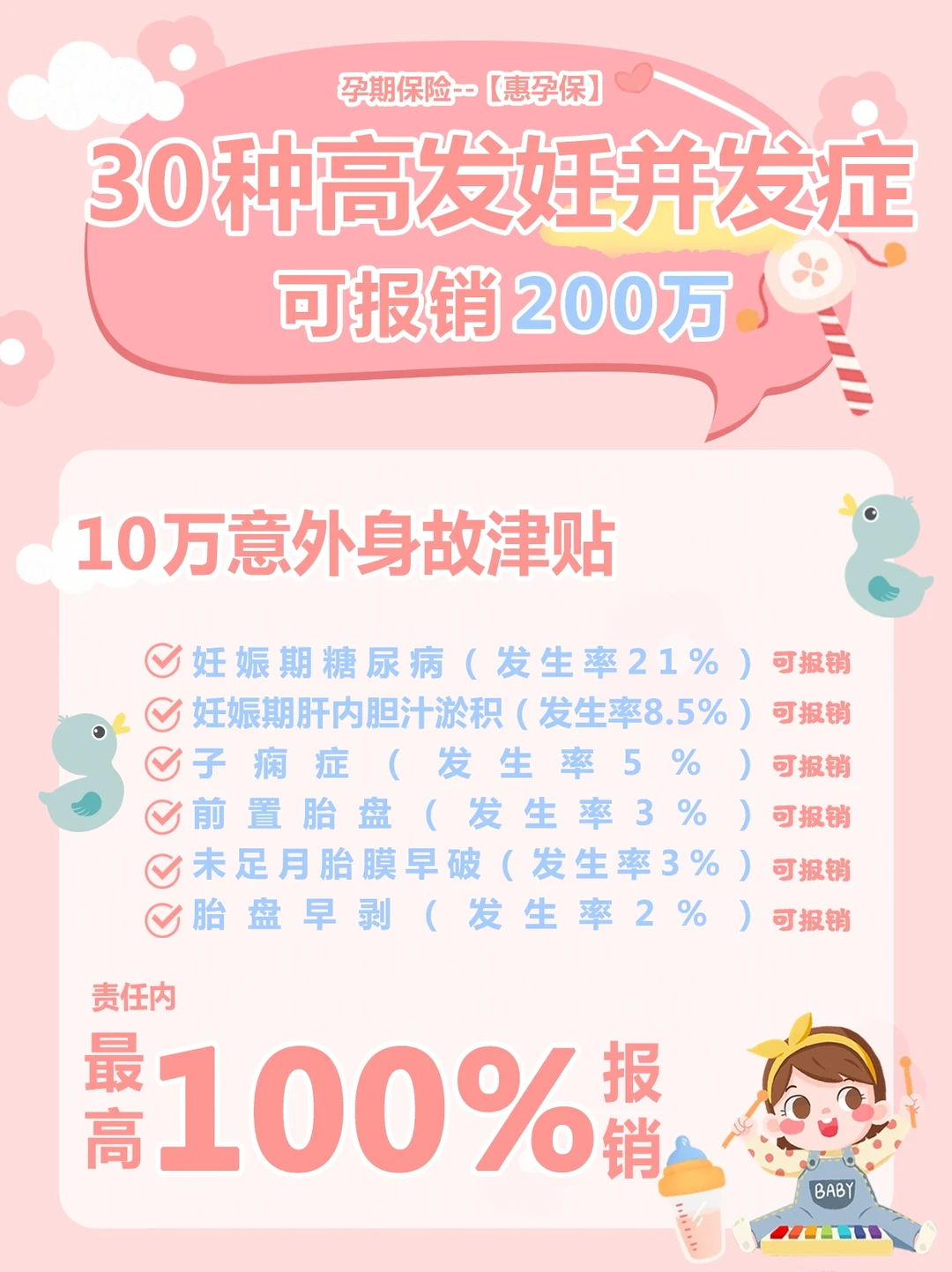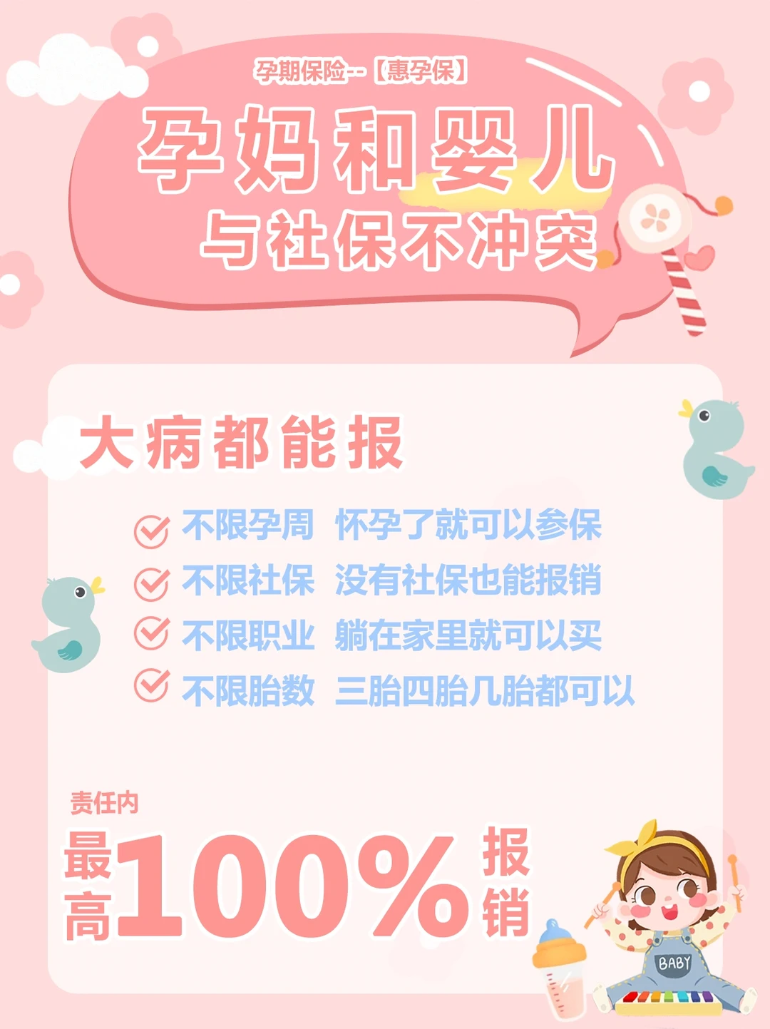 🚨🚨建议,孕期妈妈备一份孕妇险【惠孕保】,可以保障新生儿的30种先天性疾病和20种罕见病,而且也保障孕妈的30种高发妊娠期并发症,一份保单能保2个人,最主要的是怀孕了就能买,不考虑婴儿的健康情况,这点真的很重要。🫵🫵我也是看它家公中号了解的,有需要的可以搜一下。