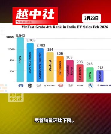 越南VinFast车企印度销量超越某迪! 2026年2月印度市场整体销量,环比下滑28.2%。越南VinFast车企卖了384辆,2.8%份额,超越某迪的305辆。VinFast车企在2025年进入印度售卖,并且准备在印度建厂销售,之前签了合作意向合同书,但是没有下文。 目前在印度的新能源车,现在销售仍然处于很困难的阶段。因为印度没有自己的新能源车牌子。特斯拉要去印度建厂,发现没有投资价值,撤回了投资。国内一些新能源车企,一起准备去印度投资建厂,最终也撤回了投资计划。 目前在印度投资建厂的外资车企,主要是日企和韩企,发展的不算多好。印度主要对塔塔汽车的保护比较严格,所以外资汽车在印度不好发展。印度一直想研发自己的新能源车牌子,但是一直不成功。越南VinFast车企去印度投资建厂,也只是签订了合作意向书,但后续越南VinFast车企也发现去印度投资建厂,可能是一条不归路,所以暂时也没有了下文。 不过越南VinFast车企在印度卖新能源车,也只是一个象征性地售卖而已,一个月卖个三五百辆车,一年卖个五六千辆车,这样的市场去投资建厂的话,那肯定要亏掉裤子的。所以说能卖车就去,卖卖不掉就直接撤,这是大多数新能源车企的思路。 因为印度的基础设施不够,充电桩太少,导致越南印度想要发展新能源车企,简直难于登天。所以世界各国的主要新能源车企,对去印度投资,都表示了抗拒。而印度这个巨大的车辆市场,虽然充满了潜力,但永远也只是潜力,变不成一个现代的大牛市场。 越南VinFast车企觉得超越某迪的销量,就觉得挺厉害的,实际上都是半斤八两。