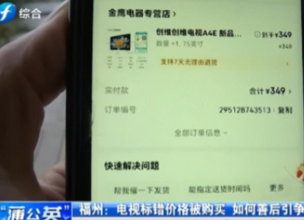 无理取闹?杭州,一女子买电视,见75寸的创维电视,只要349元,二话不说就下了单。 349块钱,买台75寸的大电视?杭州的林女士看到这个价格,以为自己眼花了,赶紧下了单。可没过五分钟,商家的电话就追来了。 商家在电话里说,对不起,价格标错了。这台电视应该是3499元,不是349块。他们愿意补偿林女士100块钱,然后取消这个订单。 林女士一听,不乐意了。她说,我钱都付了,合同就算成立了。你们标错价是你们的事,得按订单给我发货。她觉着商家没诚意,3000多的差价,只赔100块,太糊弄人了。 两边谈不拢。商家坚决不发货。僵持了一个星期,林女士也上火了,提出要商家赔偿2000块。商家一听,更不干了,反过来指责林女士这是“敲诈”。 这事一出来,网友们吵翻了天。有网友坚决站林女士这边。他们说,商家根本不是不小心,就是为了吸引眼球故意标的“秒杀价”,结果玩脱了,被人拍下了又想赖账。页面明明写着“限时秒杀”,这能叫标错吗?这就是不诚信,必须按合同发货! 也有网友觉得,林女士有点得理不饶人。349元买75寸电视,明摆着不正常,谁都知道是标错了。人家也道歉愿意补偿了,拿100块钱取消订单算了,何必较这个真,毕竟自己也没啥损失。 这事说到底,就是个“馅饼”到底该不该吃的问题。卖家觉得是重大失误,合同可以撤销。买家觉得,我按你的标价买的,你说了就得算数,不然就是欺骗。 搁谁身上都闹心。买东西的,怕被套路;卖东西的,怕被“薅羊毛”。电商平台上这种“标错价”的纠纷,时不时就有。到底该怎么算,还真得有个明确的说法。大家觉得,这电视该不该按349元发货呢?