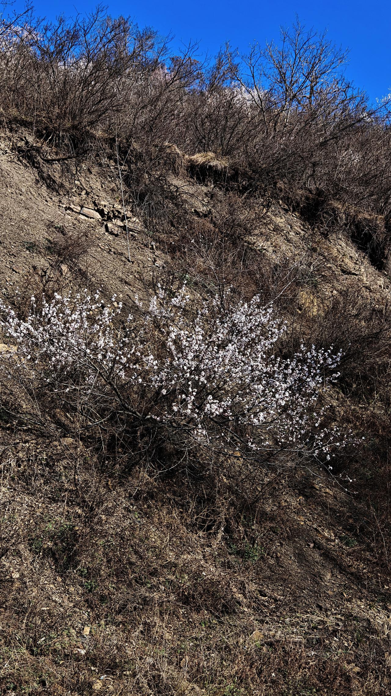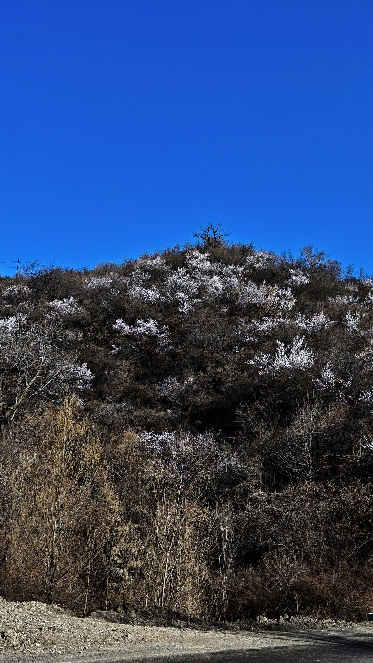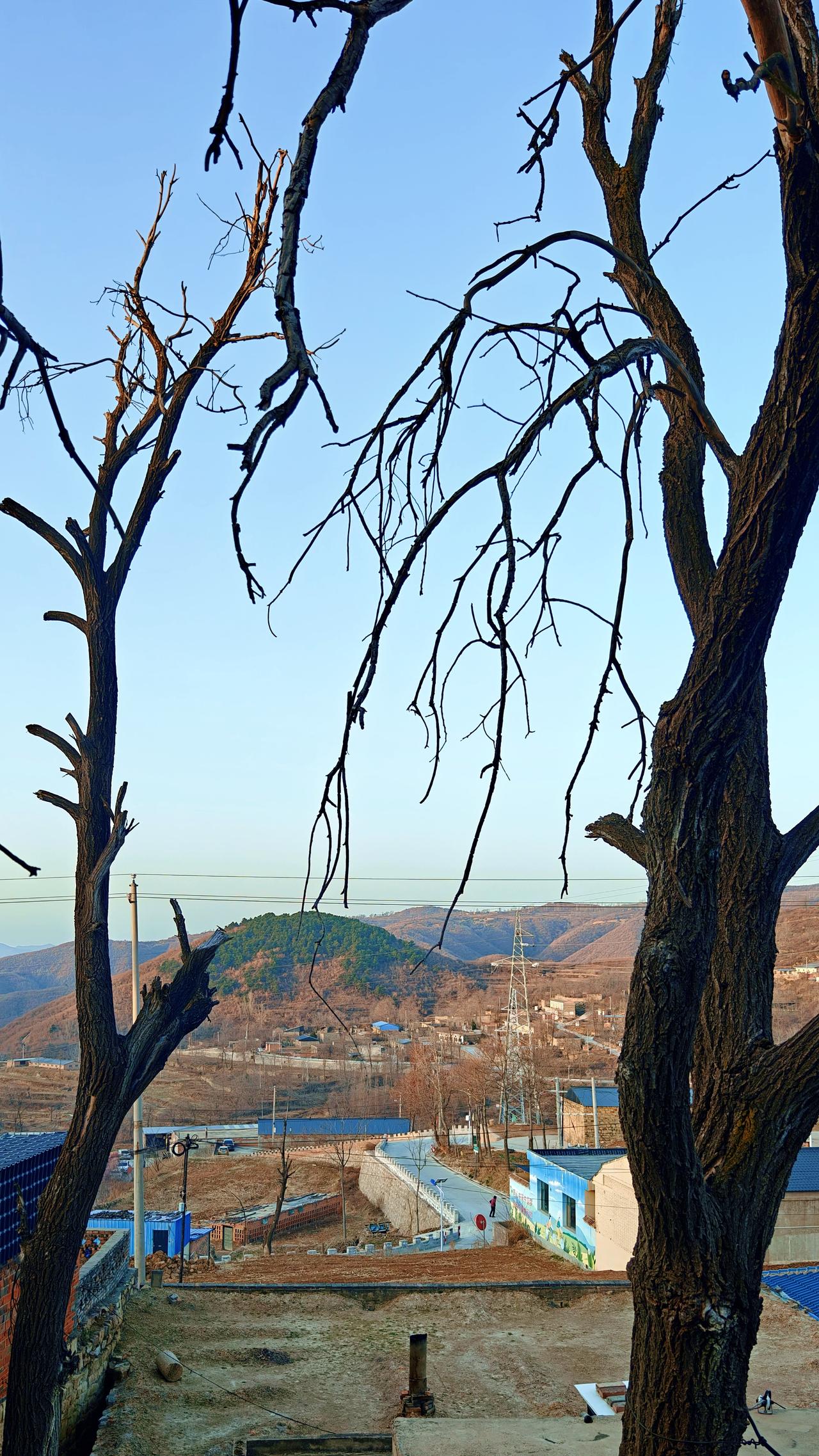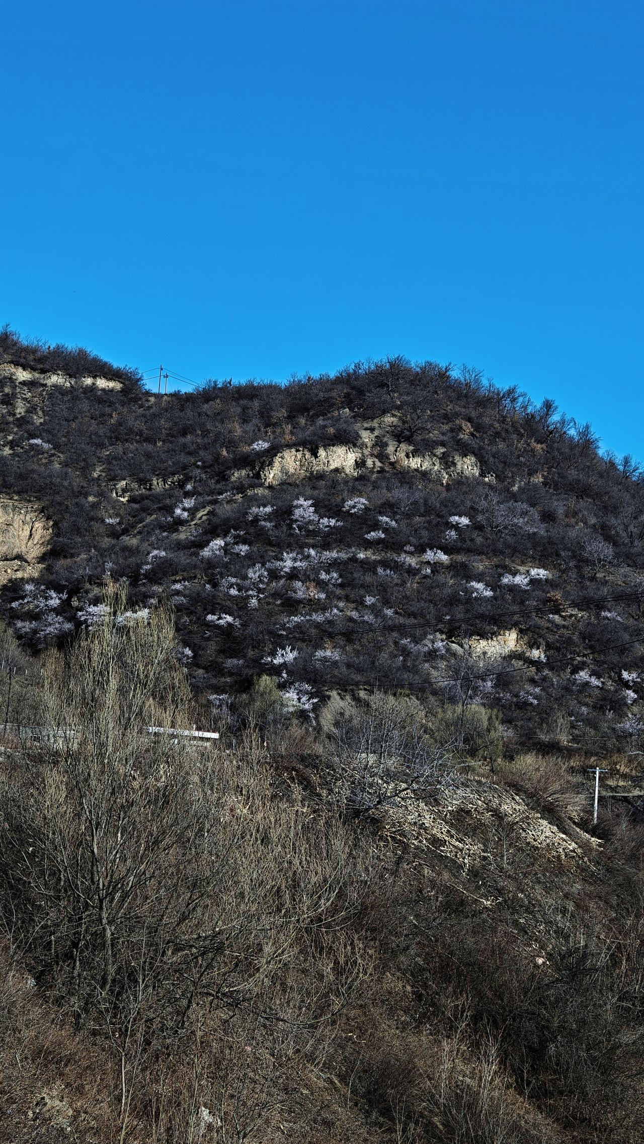 早上从关王庙乡出发,去乡宁县城。 六点半,太阳已经升了老高。(图一) 从窗台上向西望去,远山都是苍黄色,好像没有什么生机,可是唯独远处的那个山头,茂密的绿色,青松林立。每次看到这样独特的景色,我都想去身临其境,体验一下其中的美好。把镜头拉近了看,不仅山色浑厚,林木茂密,就在山头的下方,有人居住,有村落。(图二图三) 驾车走到燕庄,一坡的山桃花,忍不住又拍了几张,桃花点缀苍黑色的山头,那美自不必说。晨曦微露,天色晴空。村子很美丽,房子一排排很整齐,这样村子,谁不想进村看看?远处连绵的山脊线,伸向何处,带走每个人的想象和思绪。(图三至图六) 这里地处吕梁山最南端,再往南就进入了汾河平原。所以,山峦起伏苍劲有力的美,总是给平原地区来的人,有一种天然的吸引力。 乡宁景区 手机摄影