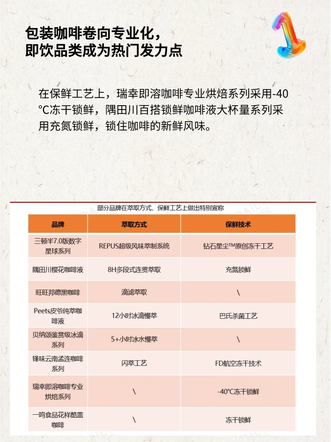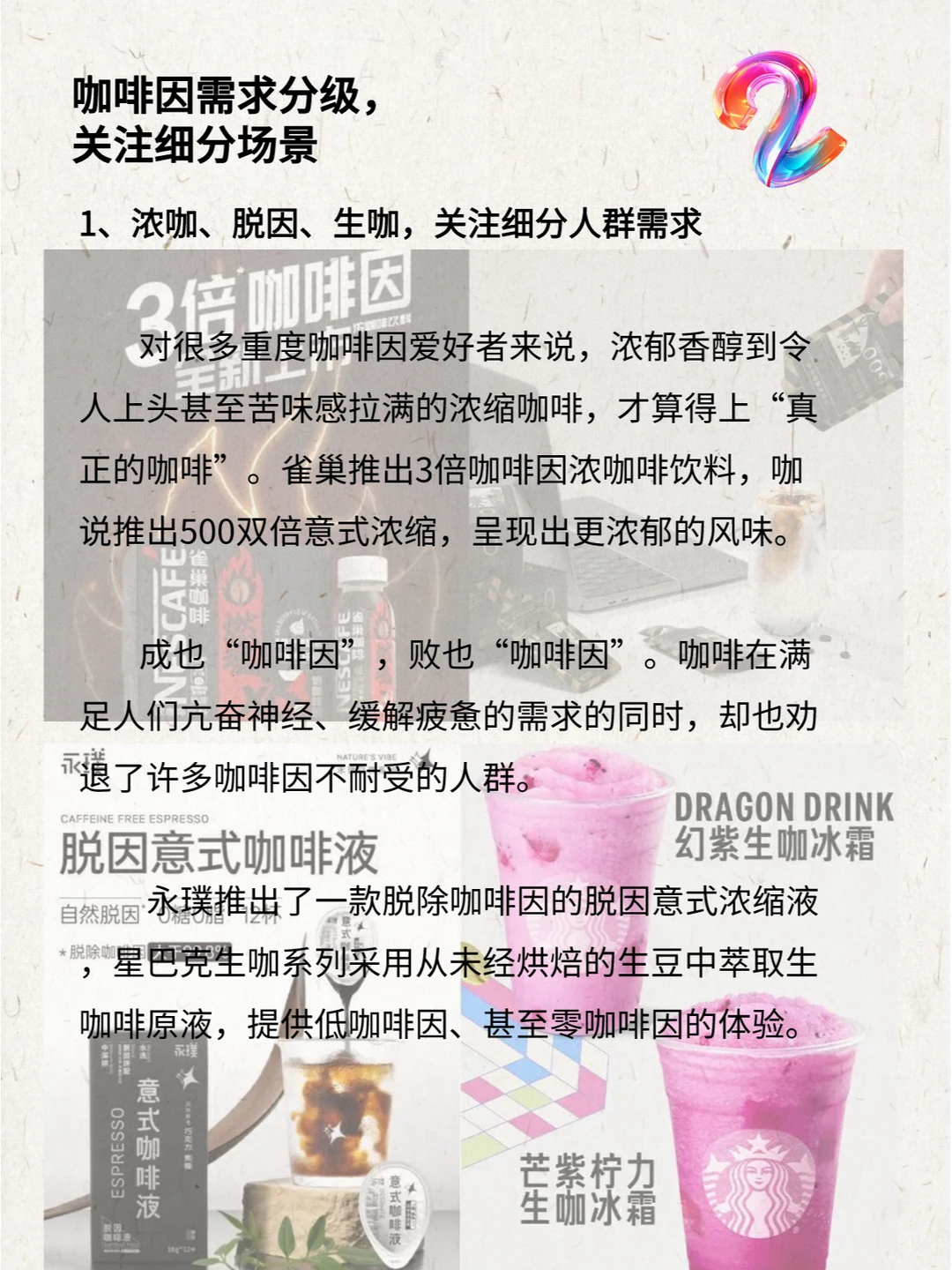 在各个维度中都卷出新的高度,咖啡新品究竟要怎么做才能从中突围?从包装产品到现制咖啡,从咖啡体验的升级,再到咖啡场景的延展,2023年的咖啡新品发生了哪些变化,透露了哪些品牌动向和市场机遇?