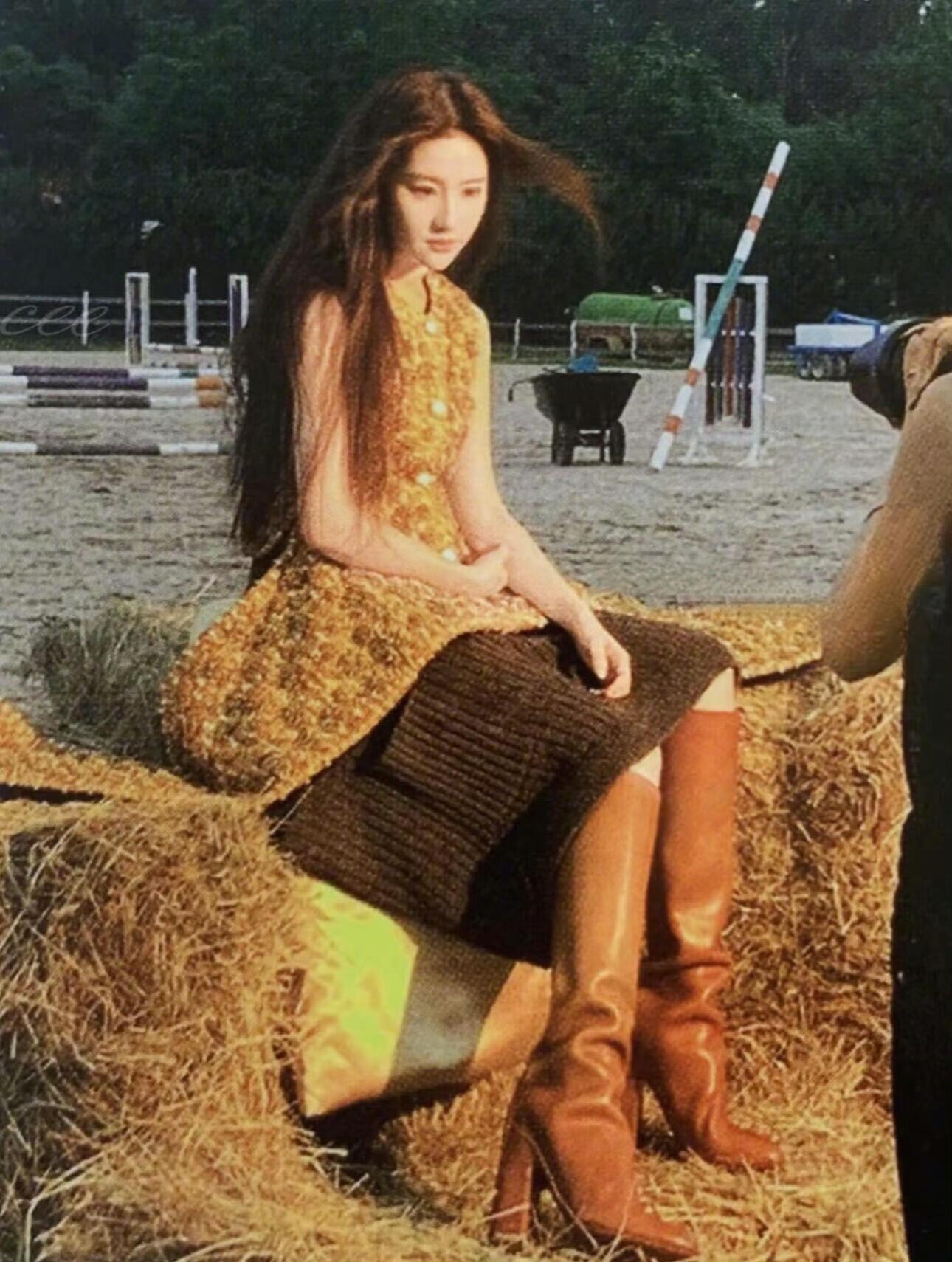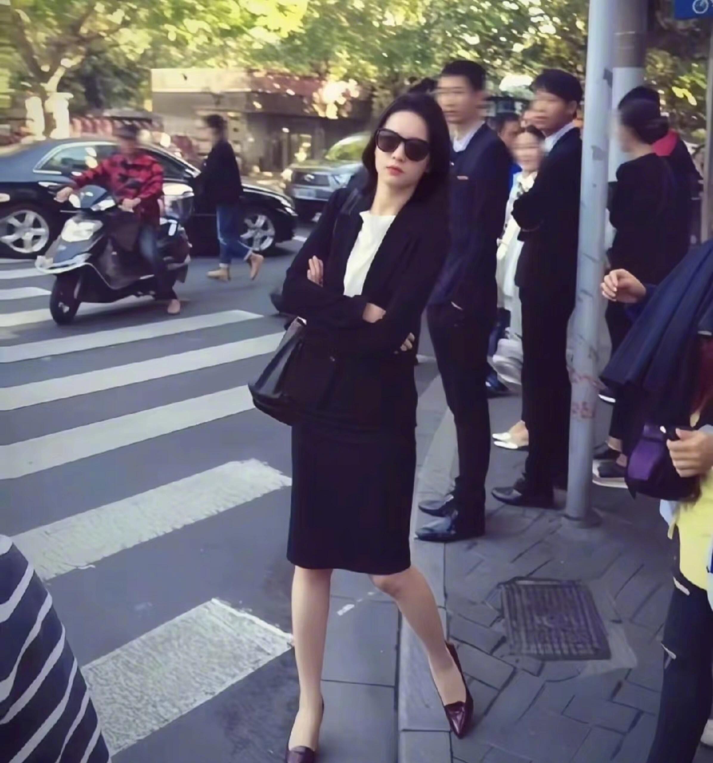 刘亦菲这条裤子挺养生,毕竟降温了肚脐眼必须护住啊