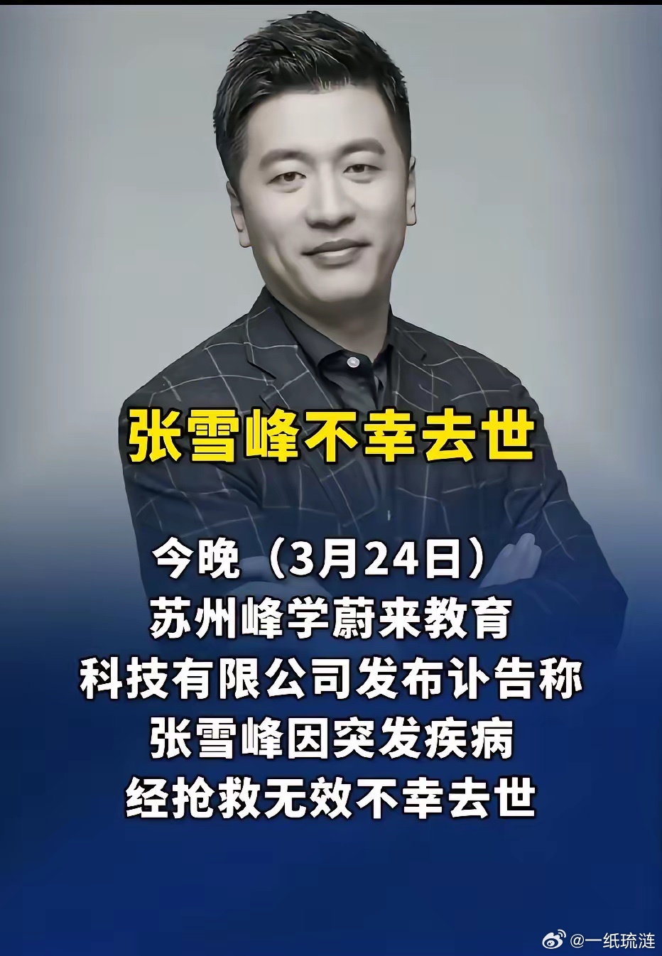 网友为张雪峰老师写的挽联,我觉得写的挺好的:上联:凭一张利口,说破世间信息差,寒门从此多坦途,堪称侠士下联:怀满腔热忱,点明卷外人生路,后辈于今失灯塔,痛断肝肠对于许多普通学生来说,张老师确实称的上指路明灯…张雪峰老师一路走好!