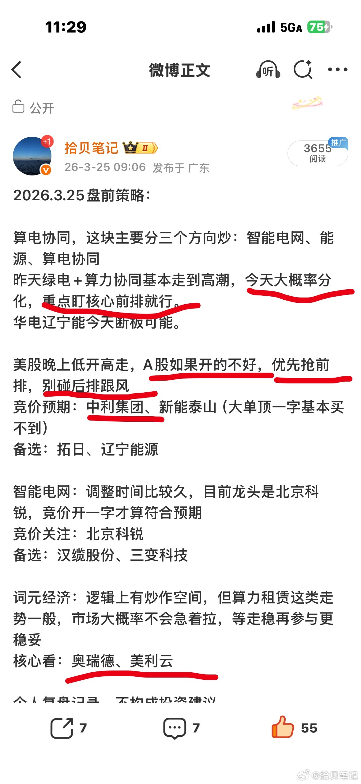 午评:根据策略,早盘中利和泰山竞价开出来都是不及预期的,但辽宁能源开了弱一字,所以盘中顺势低吸了前排核心的中利。