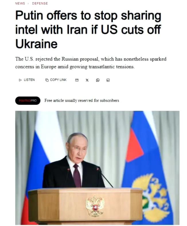 据美国《政治报》独家爆料,俄罗斯特使基里尔·德米特里耶夫与美国方面由史蒂夫·威特科夫和贾里德·库什纳组成的代表团在迈阿密进行了一次闭门会谈。 俄方在这次会谈中提出:如果美国停止对乌克兰提供情报支持,那么俄罗斯也就不会向伊朗提供情报,特别是那些标注精确坐标的美国中东军事设施信息。 但是,美方当场拒绝了俄方提议,谈判破裂。既然美国不识相,那么俄罗斯也就无所顾忌,向伊朗提供了大量情报支持。于是,美军中东基地就被伊朗打得不断冒烟。