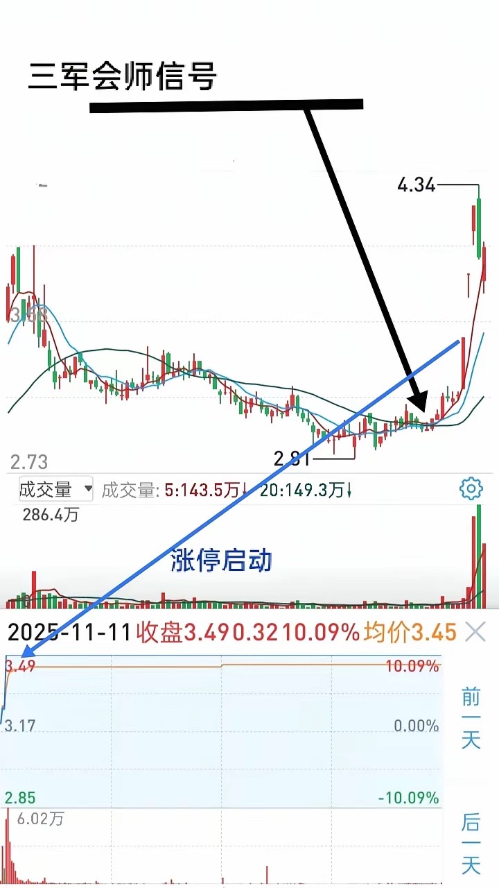 做短线交易时间长了,能感知到行情的变化,向好发展快人一步入场,指数下行则早一步下车,但要认清事物的本质。主力收割的本性是一致的。华尔街制造冲突、新闻,全世界的股市主力借机大肆收割。散户总以为股市会崩盘,主力在出逃,恰恰相反,他们把血淋淋的筹码塞满自己的帐户,而股市只不过是经历了一场暴风雨。主力在笑,散户哀声一片,此时行情又回暖了。从股市诞生那天起,无数人倒在这里,再也没有起来。这是教训,更是认知。利润产生在股价的价差产生的空间,所以做短线要清楚,象量化那种在狭窄的空间玩花招,吃不了多少肉,尽管放心,和咱们散户毫无关联。真正的主力一定会让股价翻1倍到几倍,这也是我们短线去参与,去分享一杯羹所在。所以,看下图,大涨信号出现时,主升浪启动快速跟进,高手们拿到20%的利润见分歧迅速离场,然后给自己放个假。