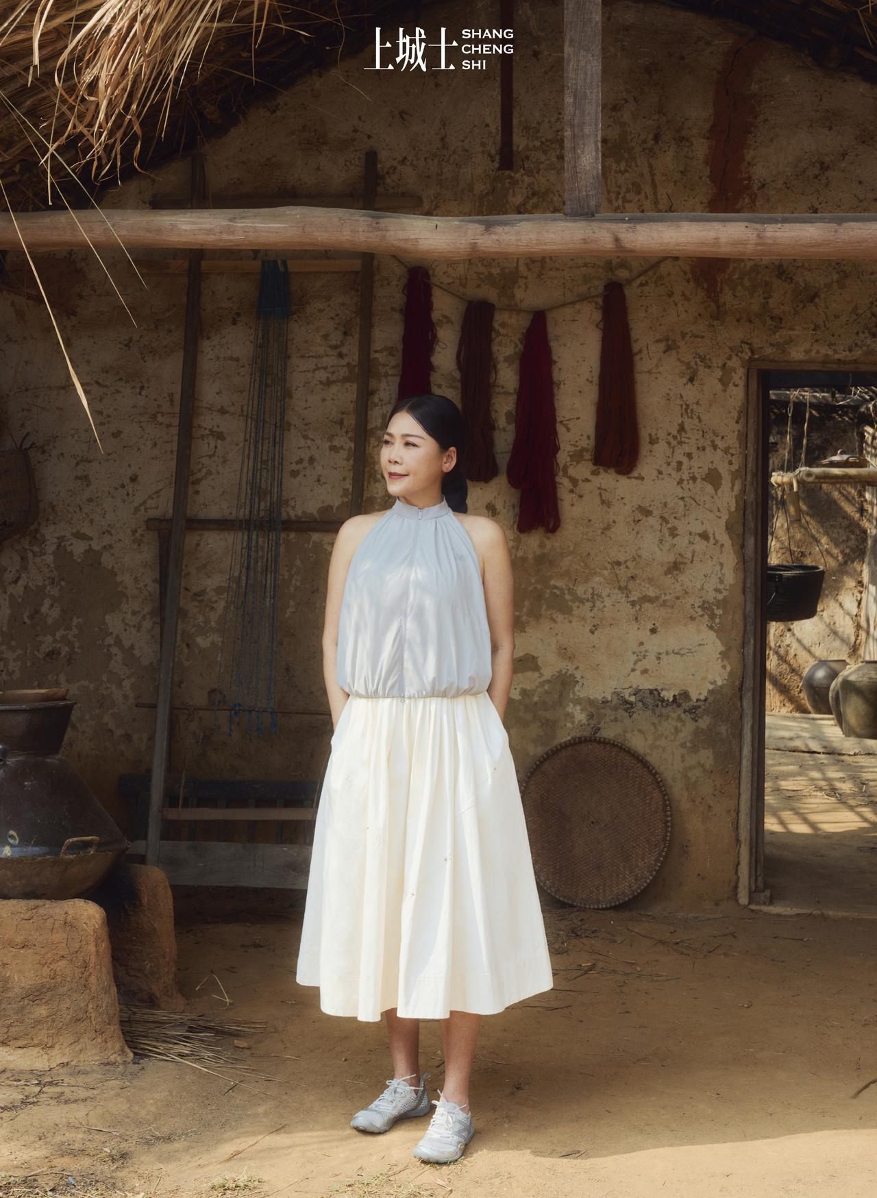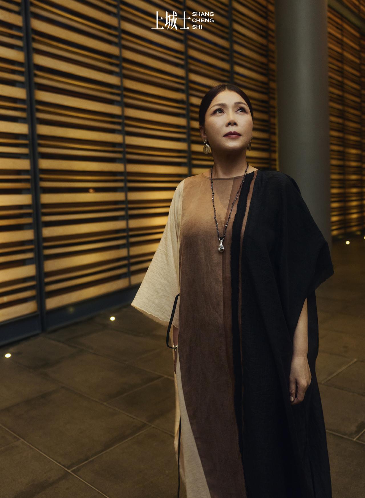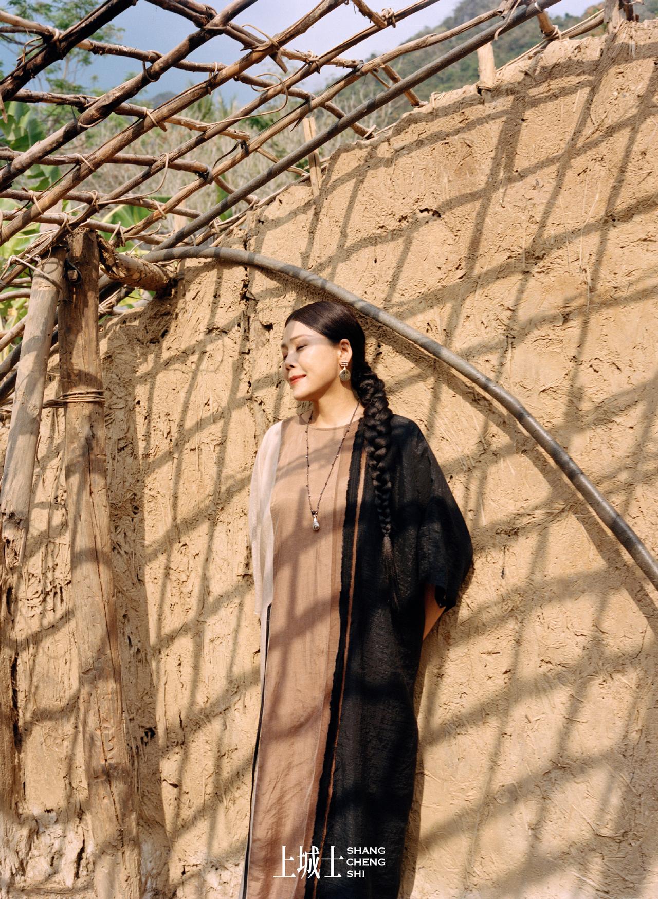 歌坛大佬田震时尚大片释出,田震她身着的服装风格与海南黎锦服装的特点相符,黎锦服装常以独特的设计和精致工艺展现文化底蕴,这件服装的色彩搭配与材质运用也体现出对传统文化的诠释。 她的表情沉静且略带思索感,眼神望向远方,似乎在沉浸于某种思绪或对周遭环境有着深刻的感知。从她的神态推测,她的内心或许正被一种宁静且带有文化浸润的情绪所包裹,仿佛在与自身的艺术气质和文化传承进行着无声的对话,既有着对过往艺术生涯的沉淀回味,也有着对当下这份承载文化的服饰所带来的独特体验的感悟,整体氛围传递出一种优雅且富有内涵的心境,仿佛在这一方空间里,她正以一种从容的姿态,与自己的艺术灵魂和文化根源紧紧相连。