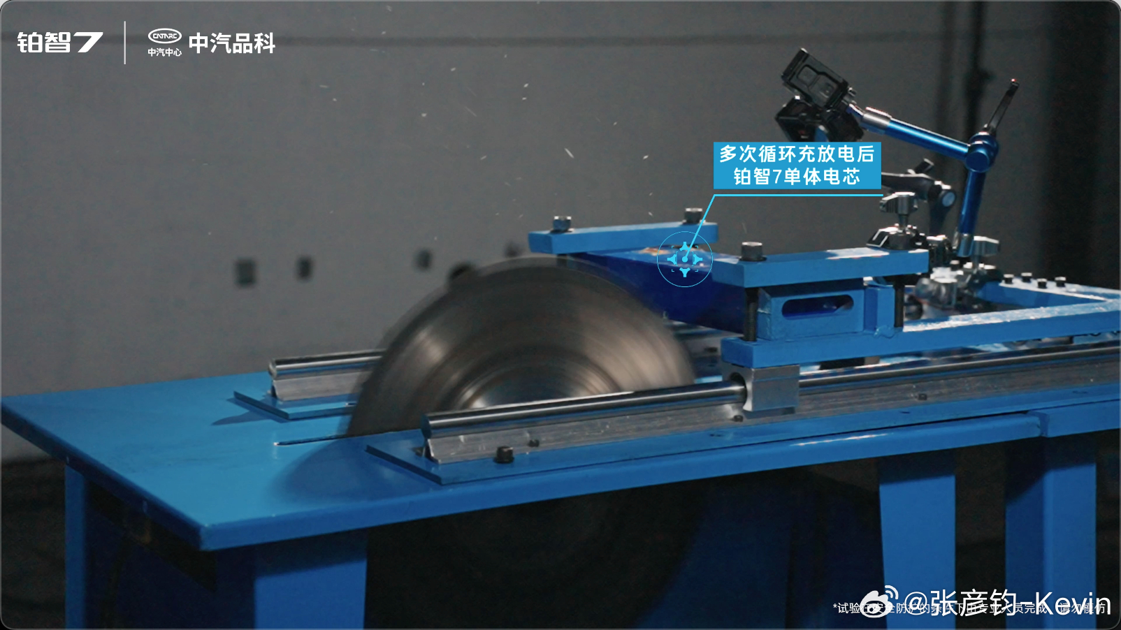 同样都是电动车,广汽丰田除了穿刺测试,这次还做了电芯切割实验,去模拟碰撞极端情况电芯被撞断的情况,在截面完全切断的情况下,电芯温度依然无异常升高,再观察24h无起火无爆炸。
