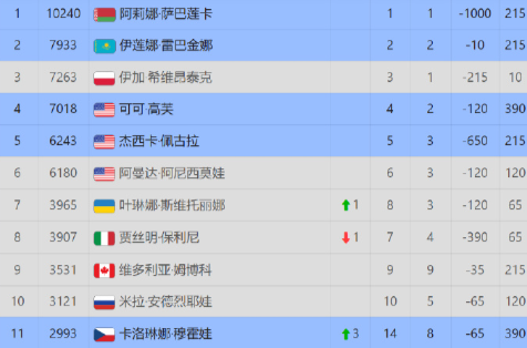 本场获胜,高夫本站拿到积分360分,如果下一场获胜她将超越斯瓦泰克,排名第3位。