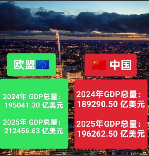 欧盟GDP总量已连续三年超过中国。按美元计算,欧盟GDP已经连续三年超过中国,而且差距越拉越大。汇率影响是主要原因。 这一点从近三年的经济数据和货币走势中能清晰得到印证。世界银行公开统计显示,2024年欧盟按美元计价的GDP总量达到19.49万亿美元,中国同期数据为18.74万亿美元,这已经是欧盟连续第三年在美元口径下实现对中国的超越。 2022年至2025年期间,人民币对美元汇率的持续调整成为关键变量。根据CF40的研究数据,这三年间人民币兑美元双边汇率累计贬值12.5%,实际有效汇率贬值幅度更是达到15.4%。 2024年人民币对美元全年平均汇率为7.1217比1,这一数值较2021年的汇率水平出现明显波动,直接影响了中国GDP的美元换算结果。国家统计局2024年最终核实的134.8万亿元人民币GDP,按当年平均汇率折算后约为18.93万亿美元,而若以2021年的汇率水平计算,这一数值将显著提高。 欧盟的情况则完全不同。欧元对美元的汇率在同期保持了相对稳定,没有出现人民币这样的持续贬值态势。2025年欧盟全年GDP增长1.5%,欧元区增长1.4%,虽然这样的本币增长速度低于中国同期5.0%的水平,但汇率因素极大地抵消了这种增长差距。 欧盟27国的经济总量在本币计价下稳步扩张,叠加欧元对美元的稳定表现,使其美元计价的GDP总量连续三年保持领先,且领先优势逐步扩大。 世界银行的数据清晰呈现了这种差距的变化轨迹。2022年双方的美元计价GDP差距还相对有限,2023年差距开始明显拉大,到2024年这一差距进一步扩大到7500多亿美元。这种变化并非源于双方经济基本面的根本性逆转,而是汇率折算机制带来的直接影响。 中国在本币计价下的GDP增长始终保持稳健,2024年和2025年连续两年实现5.0%的增长,2025年经济总量更是首次突破140万亿元人民币大关,人均GDP连续三年超过1.3万美元,这些数据都反映出中国经济的坚实韧性。 IMF在《世界经济展望》中特别指出,名义GDP即按当前市场汇率计算的美元价值,其排名会受到汇率波动的显著影响。 这一核算方式更适用于全球贸易和金融领域的对比,但并不能完全反映一个国家的实际生产能力和经济基本面。中国2025年人均GDP按年平均汇率折算达13953美元,连续三年超过1.3万美元,这一指标更能体现经济发展的实际成效。 外汇市场的供求关系也在加剧这种差异。近年来中国货物贸易顺差屡创历史新高,但结汇数量却相对较低,市场主体更倾向于持有外汇资产,这一现象进一步影响了人民币汇率的稳定。 而欧盟的贸易和外汇市场结构相对成熟,资金流动更为平稳,支撑了欧元对美元的汇率稳定。 需要明确的是,美元计价的GDP差距扩大并不意味着中国经济实力的相对下降。中国在本币计价下的经济增长速度、产业升级成效和内需市场规模,都展现出独特的竞争优势。2025年中国GDP突破140万亿元,连续跨越多个万亿台阶,这种增长韧性是欧盟难以比拟的。 欧盟连续三年在美元口径下GDP超过中国,核心驱动力就是汇率因素的持续作用。人民币对美元的累计贬值与欧元的相对稳定,在GDP折算过程中形成了明显的放大效应。这种统计层面的差距,更多反映的是全球货币市场的波动,而非双方经济基本面的真实差距。 看待这一现象需要客观把握核算口径的差异,不能单纯以美元计价的GDP数值来评判经济实力的强弱。中国经济的稳健增长、人均收入的持续提高和产业结构的不断优化,才是衡量发展成效的更重要指标。随着人民币汇率形成机制的不断完善和中国经济的持续发展,这种因汇率波动带来的统计差距也将呈现出动态变化的特征。