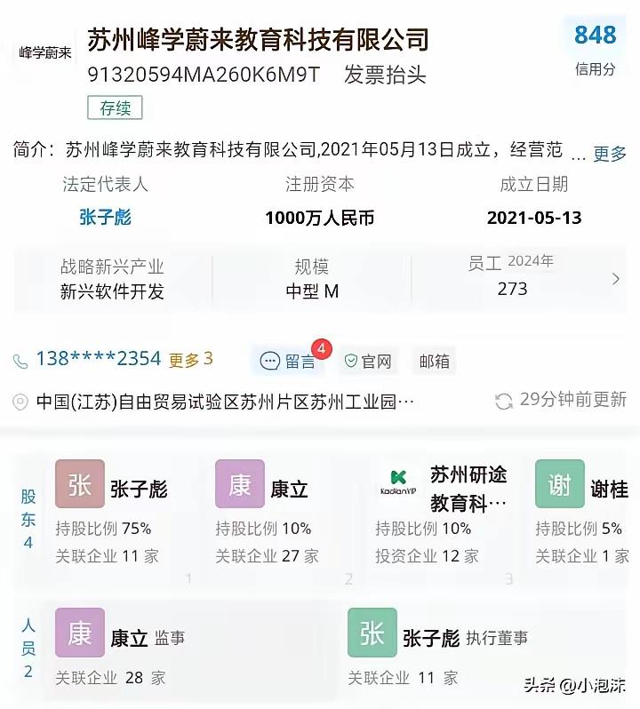 张雪峰突然走了,但他的“后手”早就安排好了。看到他家人发的悼念视频,很多人揪心:生命没有了,钱还有什么意义?公司的几百号上千员工的前途顿时暗淡了。就一个未成年的女儿,变现或许是眼下最现实的选择。 确实,没有了张雪峰,这些公司还有什么价值?更谈不上品牌价值了。这就是个人IP最大的软肋——古人说“一人得道,鸡犬升天”,反过来也一样:人一走,光环就散。 但张雪峰其实早有准备。他在峰学蔚来占75%股份,老婆李丽婧是实际受益人;无咎传媒60%股权里,连女儿名字都注册成了商标;研途教育虽只占10%多,但合伙人康立更像是职业经理人。