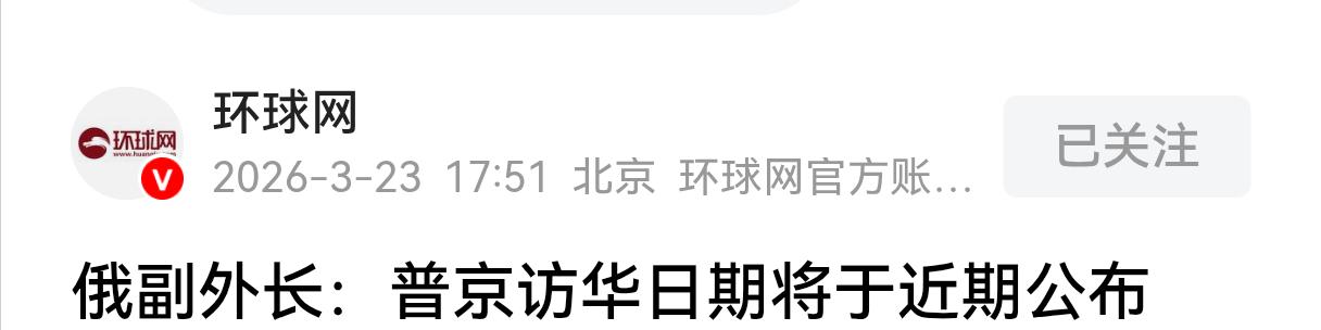 普京即将访华,特朗普又要被反超了! 当地时间3月23日,俄罗斯多家权威媒体同步对外发布重磅消息,俄副外长安德烈·鲁登科直面记者提问时明确表态,俄罗斯总统普京的访华日期,将会在近期正式对外公布。 这则消息刚一放出,就成了全球舆论关注的焦点,更和当下美国前总统特朗普的处境形成了格外刺眼的反差。 俄罗斯这边的访华安排已经进入收尾筹备阶段,高层互动提上日程、官宣在即,行程敲定只是时间问题。 可另一边是特朗普多次在公开场合主动表态,迫切想要访问中国,希望和中方开展对话,可直到现在,中方始终没有给出任何正式的访华许可,他的访华诉求一直停留在口头喊话层面,迟迟得不到实质性回应。 这一来一往的鲜明对比并非偶然,而是中俄关系持续稳步升温的必然结果。 近些年来,中俄全面战略协作伙伴关系一直稳扎稳打,两国始终坚持相互尊重、平等互利的相处原则,高层互动早已形成常态化机制,元首外交更是两国关系的核心压舱石。 每次中俄元首会晤,都能为双边务实合作指明方向,从经贸往来到能源合作,从区域稳定到全球治理,两国的合作覆盖多个领域,成果实实在在惠及两国普通民众,也为动荡的国际局势注入了难得的稳定力量。 这次普京总统即将访华,是两国长期积累的战略互信和务实合作推动的结果。双方前期已经做足了沟通筹备工作,鲁登科的公开表态,更是意味着这次访华行程已经基本敲定,就待合适时机正式官宣。 反观特朗普这边,他急于访华,更多是出于自身的现实考量,想要通过对华接触达成自己的政治诉求,却忽略了外交交往最核心的原则,那就是相互尊重、双向奔赴,从来都不是单方面提要求就能实现的。 中方在外交事务上始终秉持公平公正、有理有节的态度,不会迎合任何单方面的不合理诉求,也不会被外界的杂音干扰。 中俄之间的交往,没有附加任何政治条件,不针对第三方,纯粹是基于两国共同利益和人民意愿,这样的关系自然经得起时间和局势的考验,只会越来越紧密。 而特朗普迟迟拿不到访华的正式邀请,本质上是其违背了外交交往的基本准则,只看重自身利益,自然难以得到中方的积极回应。 当下国际局势复杂多变,各种不稳定因素频发,单边主义和霸权行径频频搅乱全球秩序,而中俄之间的紧密协作,始终是维护世界和平与稳定的重要支柱。 普京访华在即,不仅是中俄双边关系的又一次重大突破,更向世界传递出清晰信号:真正平等互信的国家关系,才能走得长远、走得稳固。 特朗普再次在外交布局上落了下风,被中俄之间的良性互动稳稳反超,这样的局面,也恰恰印证了当前国际关系的主流走向,公道人心从来都偏向平等合作、互利共赢的一方。