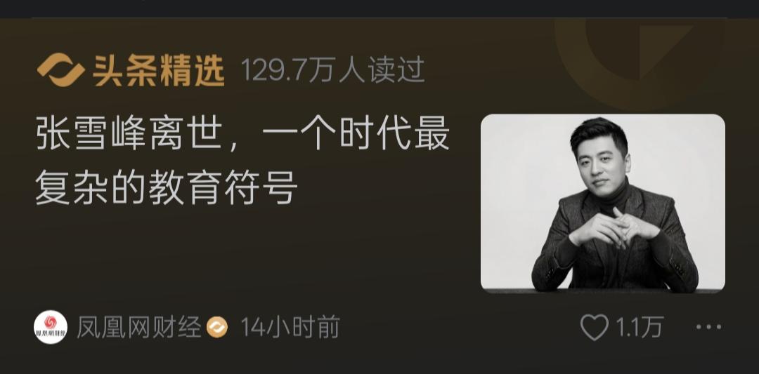 凤凰网谈张雪峰离世,他是一个时代最复杂的教育符号,算是给了极高的评价和定位。 张雪峰的直播和视频看过不少,这是一个心直口快敢说实话的人,很多时候甚至有些狂,讲话很冲却让人无法反驳。他揭露了不少高校招生和就业的套路,也不乏吐槽当下教育的乱象。 局座张召忠曾问他,为什么一定要去读名校,马云和马化腾也不是名校毕业,不也一样功成名就。张雪峰回答他说,不要盯着塔尖的几个人,你去看看在齐齐哈尔大学招聘的是什么企业,再去看看在北京科技大学招聘的是什么企业,再去看看清华北大招聘的都是什么企业。张雪峰访谈
