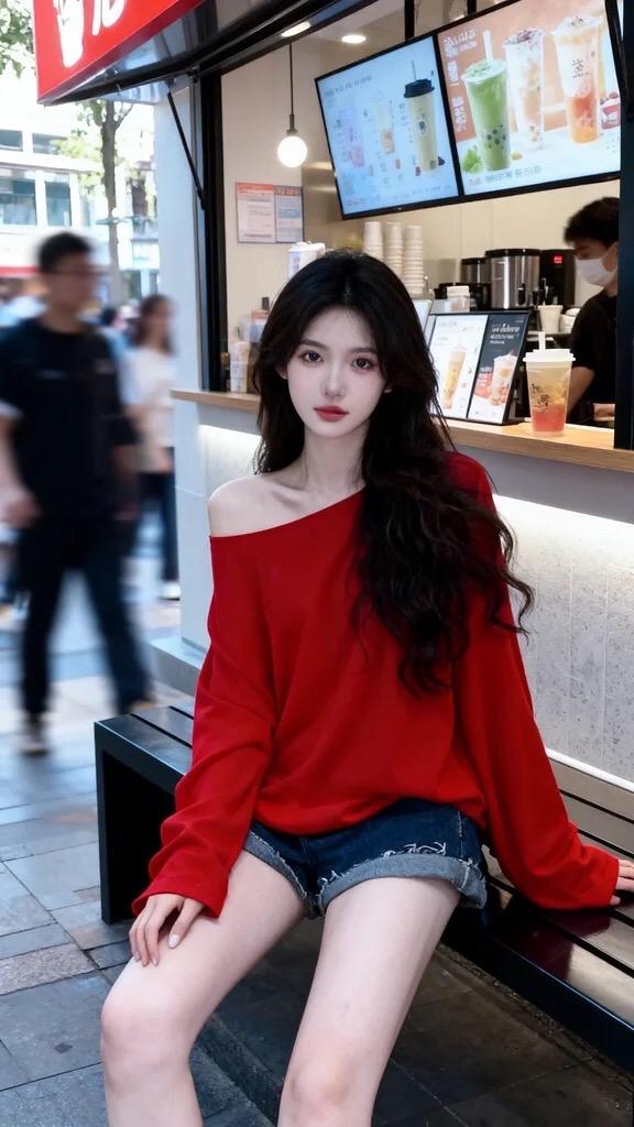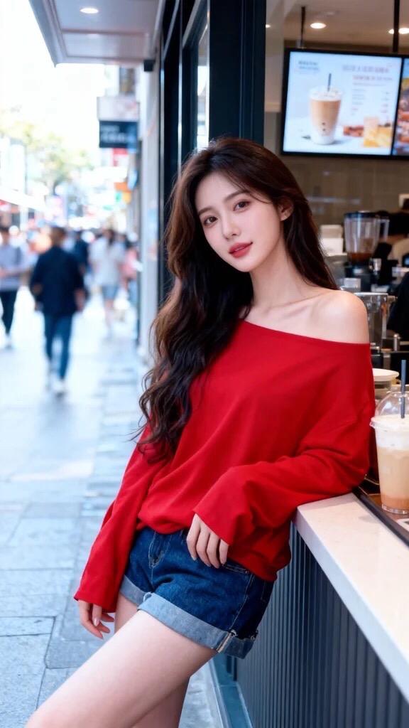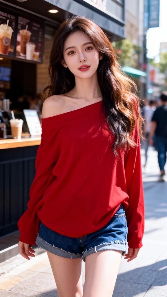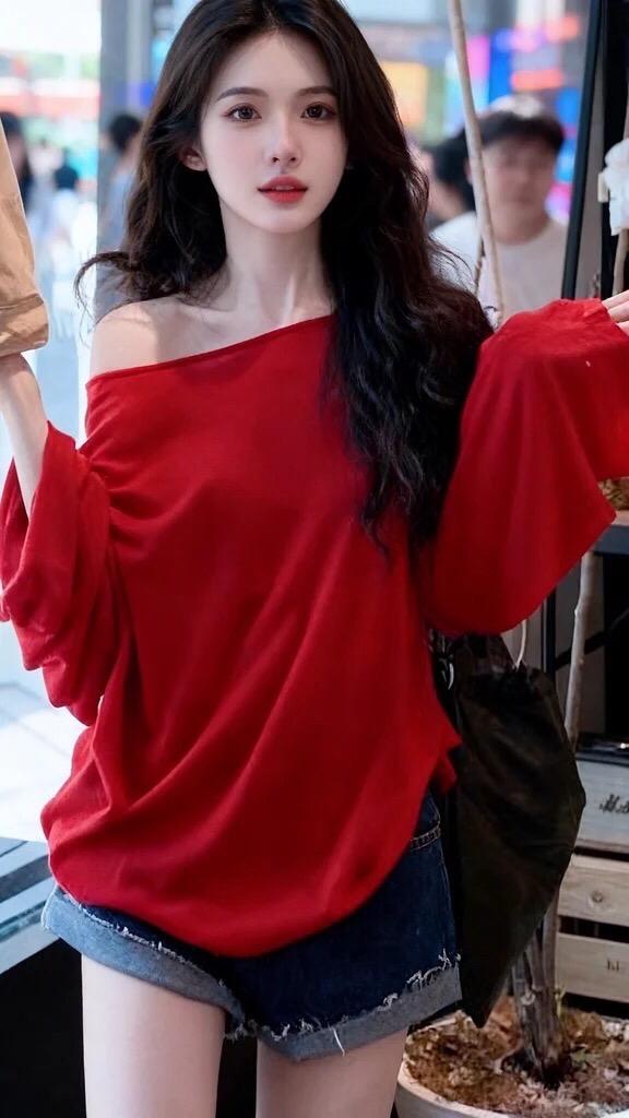辣妹穿搭 韩风穿搭 超a夏日穿搭 短裤搭配 红色露肩上衣搭配