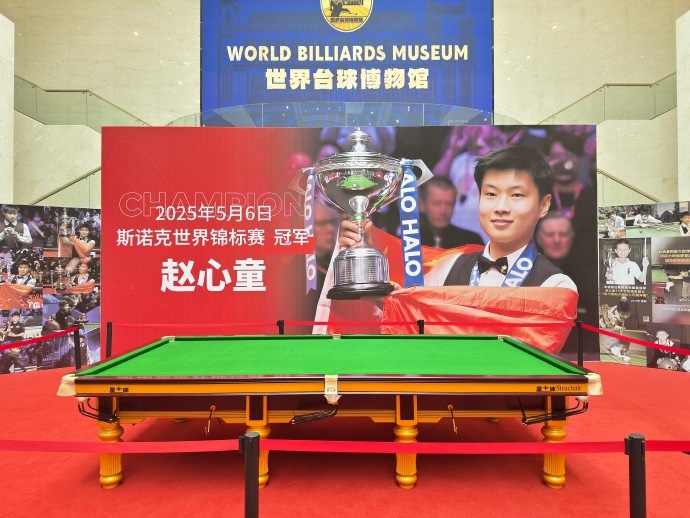 #赵心童世锦赛球桌陈列博物馆#荣耀定格,见证中国斯诺克高光时刻。世锦赛夺冠球桌,正式陈列江西玉山世界台球博物馆。#看斯诺克上咪咕#