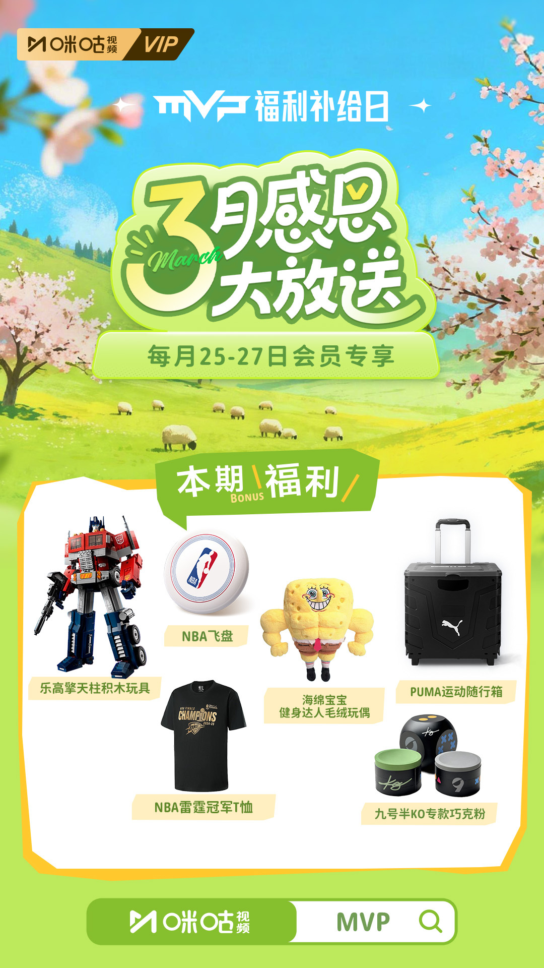 ╭会╮╭员╮╭福╮╭利╮✨本月福利补给已上新 👇 🍀春日萌友派对🍀千元乐高&海绵宝宝拼图免费抽⛰️踏青能量站⛰️花式运动周边不负春光九号半 KO 巧克粉特别献礼每月 25-27 日限时开放评论区链接直达