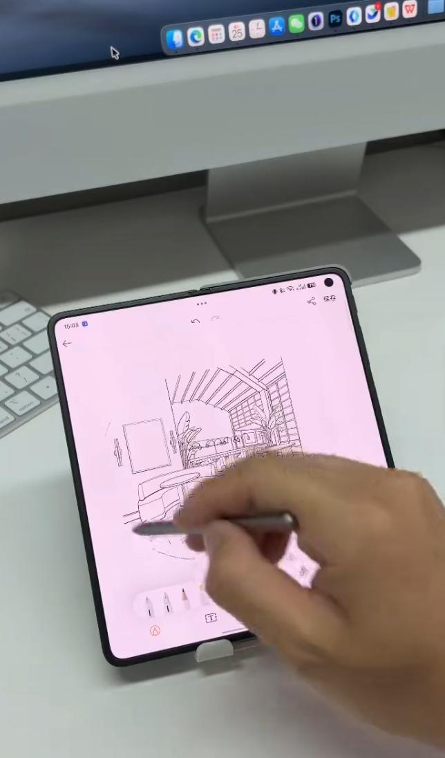作为一名设计师,狠狠被Find N6种草了! 天天画图、天天改方案,出门吃个饭都得大包小包,带上手机、平板、手写笔,就是怕突然得改图,手机处理不了,还得掏个iPad出来处理 是有考虑过换折叠屏,平常能当手机用,真有需要了展开当小平板也行嘛,但看来看去总不满意,要不就是折痕太明显明显影响画图,要不就是没手写笔能用...... 直到最近发布的OPPO Find N6让我眼前一亮,这不是正正好满足我的需求吗? 一个是它基本看不到折痕,不会影响看图画图。另一个是它有官方的手写笔,配套有磁吸手机壳,笔直接塞里就行,不用怕丢了或要用时找不到 主要是它这个AI手写笔的功能是真好用啊,随手涂鸦,直接就能AI生成画作,平时给客户讲解的时候少不了当场画完演示,有这个AI功能就方便很多了,一键生成给客户看更快更清晰,事半功倍~ 平时出门少带个平板真的太舒服了,1w出头的价格,买个16+1TB顶配的,当个三四年生产力工具完全不是问题,还不用担心后续内存涨价的影响,不是美滋滋?