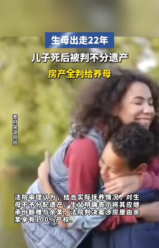 “吃相难看!”湖南株洲,一男子出生几个月,生母便离家出走,9个月大的时候,就被生父给了现在的养母,养母将他辛苦抚养长大,男子却意外溺水身亡,没想到这时候,生母突然冒出来,想要和养母争房产!网友:好意思吗? 2025年4月16日,湖南株洲,22岁的小邹在一次意外中溺水身亡。消息传开,最难过的当属把他一手带大的余某。老人家强忍着白发人送黑发人的悲痛,操持了所有后事。而小邹的生父邹某也赶来了,掏钱办了丧葬。唯独他的生母成某,从头到尾,连个面都没露过。 小邹生前和余某共同拥有一套房产。人都走了,这房子该怎么分?就在这个时候,成某突然杀了出来,她一纸诉状,把余某和邹某都告上了法庭,开口就要分房产。 经法院查证,此房屋确系两人共同持有,双方各占一半份额。法院严谨核查之下,明晰了房屋的权属情况。小邹走了,他那50%的份额按理说应该进入法定继承。成某作为生母,确实是第一顺序继承人,依法有资格参与分配。 问题接踵而至:成某可曾尽过哪怕一日为人母的责任?小邹出生才几个月,成某就跑了。等孩子9个月大时,邹某实在养不起,把他送到了余某家。在随后的二十一年间,小邹的日常生活琐事,诸如饮食起居、求学就医等,几乎皆由余某悉心照料、操心操办。邹某呢,虽然偶尔出点学费,但大头开销全压在余某身上。这种付出,不是用钱能衡量的。 反观成某,人间蒸发21年,孩子活着的时候不管,死了也不来送最后一程,现在看到房子倒积极了。这算什么?法院看不下去了。《民法典》第1130条写得明明白白:有抚养能力和条件,却不尽抚养义务的,分配遗产时可以少分甚至不分。成某这21年的缺席,已经不是"少分"的问题了,而是直接归零。 关于邹某,其应得份额已获法院认定,为百分之五十。如此判定,明确了邹某在相关事务中的权益占比,使权益分配有了清晰的界定。但他在法庭上直接把话撂在了桌面上,自己该得的那部分,一分不留,全给余某。这是他的权利,法院照准。 于是,2025年那个春天,湖南株洲石峰区人民法院给出了最终判决:小邹名下那50%的房产份额,全部由余某继承。加上余某本来就持有的一半产权,这套房子100%归了余某。 案子判完了,舆论却炸了锅。网友们的反应出奇一致:孩子生下来不养,葬礼都不去,现在倒想着出来抢房子,这心思也太明显了吧?这种愤怒不无道理。法律之庇佑,绝非仅系于血缘。它垂青的,是那些真心付出、勇担责任之人,以公正的力量,守护着世间真情与担当。 余某这21年的照顾,不是用"养母"两个字就能简单概括的,那是无数个日夜的陪伴,是把一个9个月大的婴儿拉扯成22岁成年人的心血。亲情这东西,从来不是靠"生"出来的,而是靠"养"出来的。那些只管生不管养的父母,法律不会帮你背这个锅。