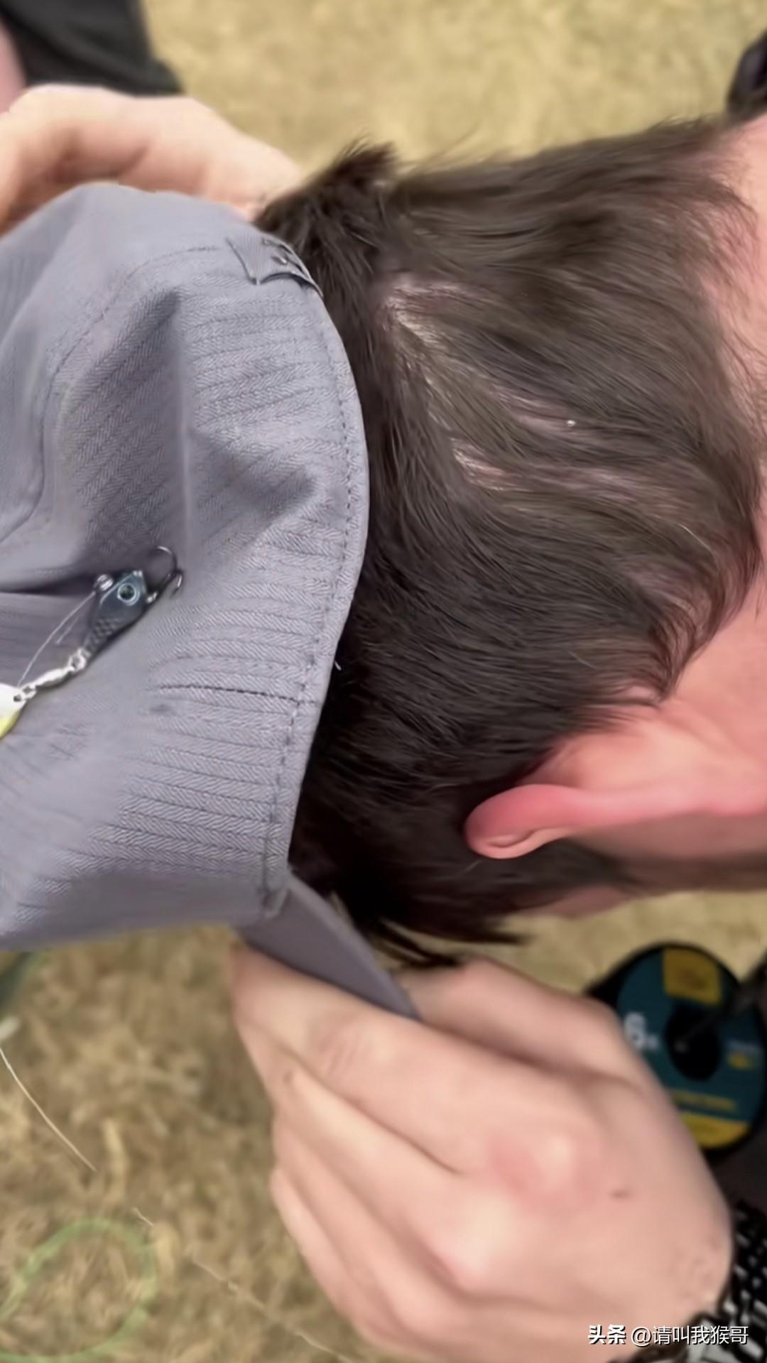 这位玩路亚的哥们,就是因为摔杆之前没有观察四周,结果一杆甩出去,钩子直接挂到路人的头皮上了,看着就很疼。而且路亚钩大多都带有倒刺,挂到皮肉上很难顺利取下来,就算能取下来,在取的过程中也是很难受的。像这种危险的位置,有时候还不能自己取钩,得到医院才行。搞不好后面被人索要赔偿的话,还得损失一笔钱。所以奉劝玩路亚的朋友,摔杆之前一定要看看周围有没有人。