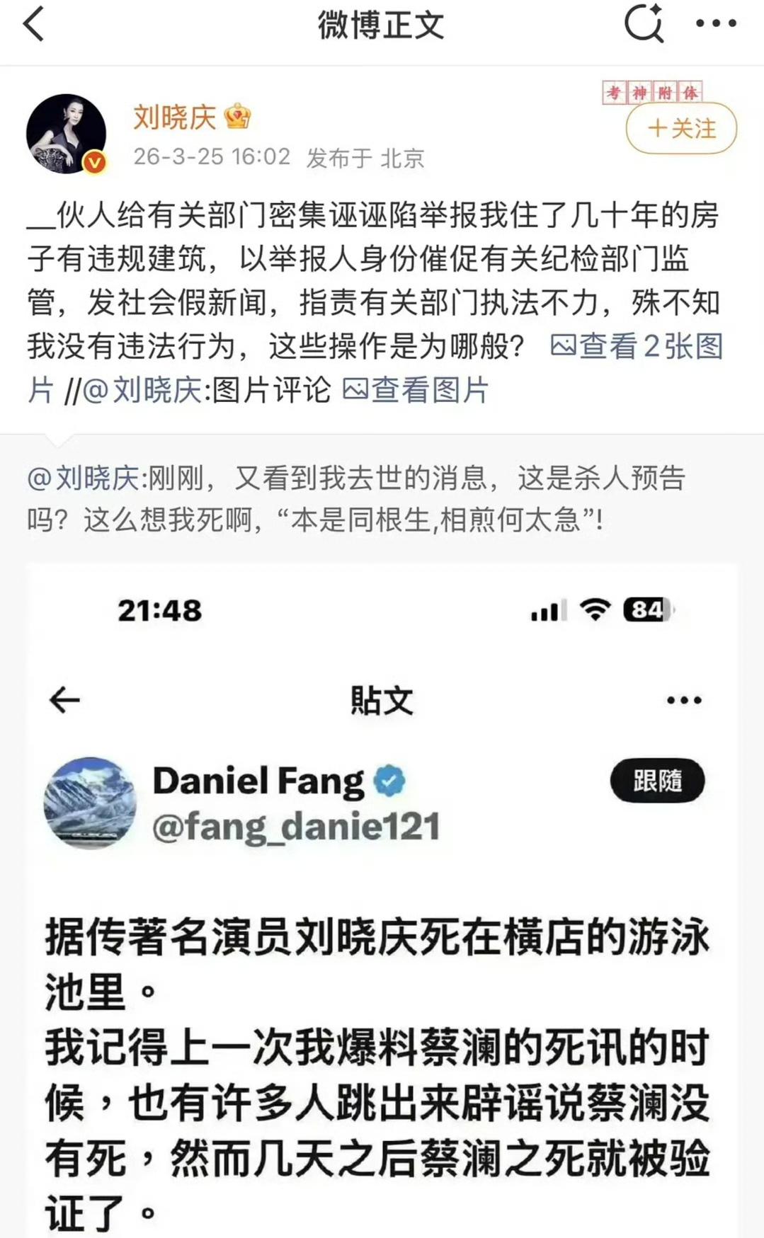 升米恩,斗米仇!刘晓庆被亲外甥造谣去世,其前夫陈国军早已提醒,终究错付! 持续被举报和造谣去世,刘晓庆发文直指是亲外甥靖然所为,直斥“本是同根生,相煎何太急!” 去年,刘晓庆和妹妹一家绝交的消息曾经引发热议,其妹还出来辟谣,表示希望一家人能坐在一起好好谈谈,毕竟血浓于水。 万万没想到,她们的关系竟然恶化到如此地步,实在令人唏嘘。 其实,刘晓庆的前夫早已经提醒过刘晓庆,只是大大咧咧的她并未放在心上。 在陈国军的传记《我和刘晓庆:不得不说的故事》中,陈国军直言:刘晓红和丈夫靖军不希望刘晓庆有孩子,没有孩子,就可以全身心地疼他们的儿子靖然,百年后所有的财产都属于靖然。 靖然,也曾经被刘晓庆写在她的自传《人生不怕从头再来》中,她对外甥的爱洋溢在字里行间。 刘晓庆是个事业狂,她和妹妹商量,妹妹生孩子,生完她照顾养育,会对孩子视如己出。 生完靖然40天后,刘晓红就出国留学,靖然交给刘晓庆和保姆照顾,刘晓庆像妈妈一样爱着靖然。 为了让靖然去好的学校,刘晓庆在学校旁边买了几套房子,姥姥姥爷每天可以在楼上看着靖然走进学校。 刘晓庆出事的时候,靖然在国外留学,刘晓庆千叮咛万嘱咐,无论发生什么事都要留着靖然的学费,亲生母亲也不过如此。 刘晓庆刘晓红姐决裂后,她们不再生活在一起,靖然一家搬离刘晓庆的住处,本以为她们去年已经和好,没想到裂痕越来越深。 刘晓庆倾尽半生的善意与疼爱,掏心掏肺养大的外甥,居然给她最深的伤害,那句“本是同根生,相煎何太急”的怒斥,藏着多少寒心与绝望。 这份来自至亲的伤害,比从艺生涯的跌宕起伏,更让刘晓庆痛彻心扉吧? 刘晓庆