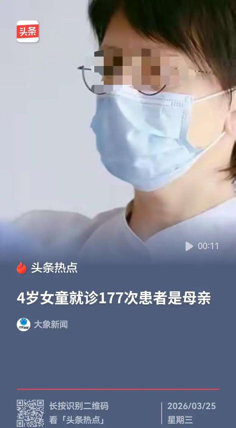 湖北四岁女童177次就诊背后,藏着最隐蔽的儿童虐待 湖北,四岁女童,被妈妈带去就诊了,177次,都未发现异常,后来才发现,原来孩子没有病,是妈妈有病,妈妈患上MSBP,也就是妈妈通过伪造症状,让女童接受不必要的诊治,来满足妈妈照顾患者的病理需求,这也属于是典型的虐待儿童的形式之一,导致被照顾者的死亡率高达10%,这引起了大家的热议。 说实话,刚看到这件事的时候,很多人第一反应都是不敢相信,毕竟在我们的认知里,妈妈都是拼尽全力保护孩子的,怎么会反过来害孩子呢?可现实就是这么残酷,这起看似离谱的事件,撕开了代理型孟乔森综合征(MSBP)最冰冷的真面目,也让大家见识到了一种最隐蔽、最容易被忽视的儿童虐待。 先说说这个MSBP,它不是普通的矫情,也不是一时糊涂,而是实打实的精神心理障碍。患上这种病的人,绝大多数都是孩子的妈妈,她们心里有一种扭曲的执念,非要通过“照顾生病的孩子”,才能找到自己的价值,才能获得别人的关注和同情。 为了满足这份病态的需求,她们会想尽办法伪造孩子的病症。要么教孩子谎称身体不舒服,要么故意给孩子吃不该吃的东西,制造出生病的假象。就像这个四岁的小女孩,明明身体健健康康,却被妈妈带着跑了177次医院,抽血、检查、问诊,一次次重复着没必要的医疗流程。 想想都觉得心疼,一个才四岁的孩子,本该在阳光下跑跳玩耍,享受无忧无虑的童年,却被牢牢困在医院里。她不懂妈妈为什么总说自己生病,也不懂为什么总要承受那些不舒服的检查,只能乖乖跟着妈妈奔波,小小的心里满是迷茫和恐惧。 这种伤害,远比我们想象的更严重。医学数据显示,这类被虐待的孩子,死亡率高达10%,就算侥幸活下来,身体和心理也会留下一辈子的创伤。频繁的检查可能损伤孩子的身体机能,而长期被灌输“自己有病”的观念,会让孩子对自己的身体感知产生错乱,长大后极易出现焦虑、自卑、信任缺失等心理问题。 更让人无奈的是,这种虐待极具隐蔽性。在外人眼里,这位妈妈带着孩子频繁就医,是对孩子无微不至、忧心忡忡的表现,谁也不会往“虐待”这方面想。医生反复检查查不出问题,只会觉得是病症特殊,很难第一时间联想到是家长的心理出了问题,这也让这类恶行能长时间隐藏在“母爱”的外衣下。 其实这类案件并非个例,在国内外都有过相关报道。有的家长甚至为了让症状更逼真,不惜故意伤害孩子的身体,一步步把孩子推向危险的边缘。他们不是不爱孩子,只是这份爱已经彻底扭曲,变成了满足自己私欲的工具,可怜的孩子,成了这份病态心理的牺牲品。 这起事件也给所有家长和社会敲响了警钟。我们总觉得虐待孩子是打骂、遗弃这种直观的行为,却忽略了这种披着“关爱”外衣的精神与医疗虐待。作为身边人,要是发现有人频繁带孩子就医,且检查结果始终正常,却依旧固执地认为孩子生病,一定要多留个心眼,及时察觉异常。 相关机构和医院也该加强对这类心理疾病的认知,建立更完善的筛查机制,一旦发现类似情况,及时介入干预,既能帮助患病的家长接受治疗,也能尽早保护孩子脱离苦海。孩子是无辜的,他们不该成为大人病态心理的受害者,每一个小生命都该被温柔善待,而不是在本该被守护的年纪,承受最亲近的人带来的伤害。 各位读者你们怎么看?欢迎在评论区讨论。