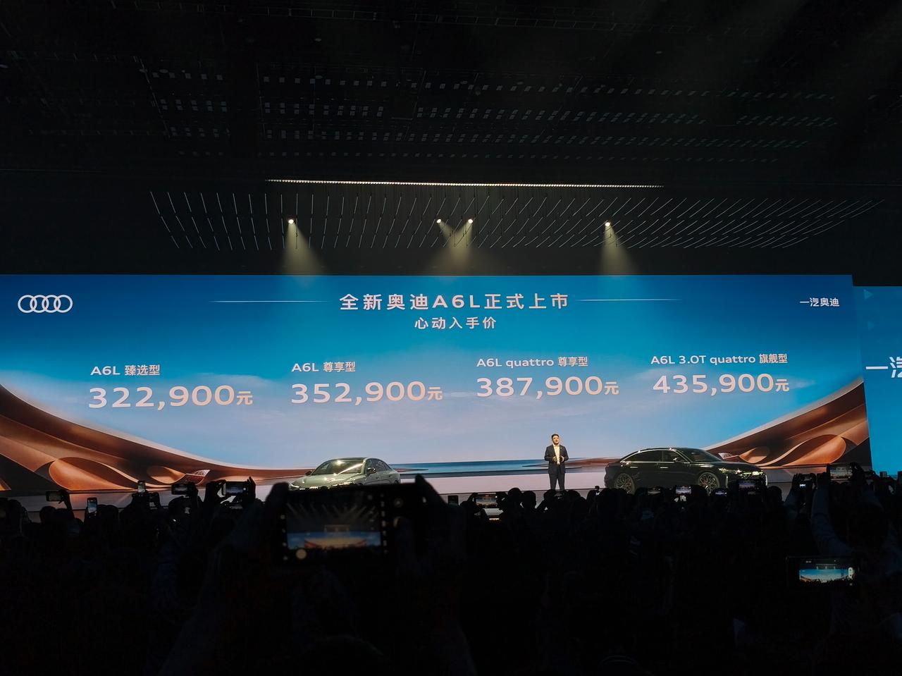 车盟快讯:3月25日,全新奥迪A6L正式上市,奥迪A6L e-tron开启预售。全新奥迪A6L上市心动入手价为:32.29万元-43.59万元;A6L e -tron预售价为:31.3万元-44.3万元。现在下订,可限时享受多项购车权益。新车基于PPC豪华燃油车平台打造,提供双前脸设计,动感型熏黑、致雅型镀铬,风格分明。 车身尺寸全面升级,轴距3066mm,空间更宽裕。内饰配三联屏,后排坐垫加长且靠背可调,舒适性提升。新车标配quattro四驱,高配搭空气悬架与后轮转向,搭载华为乾坤智驾(可选激光雷达)。动力提供2.0T高低功率、3.0T V6三种选择,产品力全面进阶。大家认为新一代A6L会比上一代卖得更好吗?A6L e-tron能否突破自主新能源的包围呢?