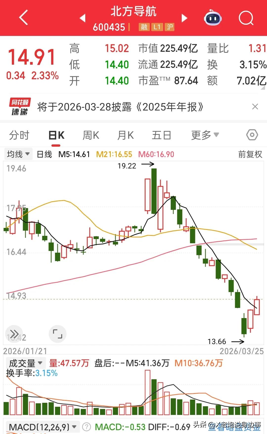 我的朋友李开源,3月2号那天,听说美国伊朗冲突,美国以色列还轰炸伊朗好几个地方,他脑子一热,觉得打仗肯定利好军工股,啥也不多想,直接砸了80000块买了北方导航 逻辑倒是简单,就认准军工涨,毫不犹豫一头扎进去,结果呢?3月3号直接给他当头一棒,第一天就亏了4000块 后面第三天第四天,好不容易稍微回点本、有点盈利,结果从第五天开始,彻底开启阴跌模式,每天跌两三个点,一路跌个不停 熬到3月16号,他觉得股价到底了,舍不得割肉,又补了4万块仓,就想拉低成本 结果到3月23号,股价跌到13块7,他当初买的时候可是17.98啊 这波操作真是猛如虎,一算账,直接亏了快2万块,太扎心了 炒股真的不能凭感觉啊,看着都替他难受😮💨 炒股美军攻打伊朗 军工股 炒股吐槽