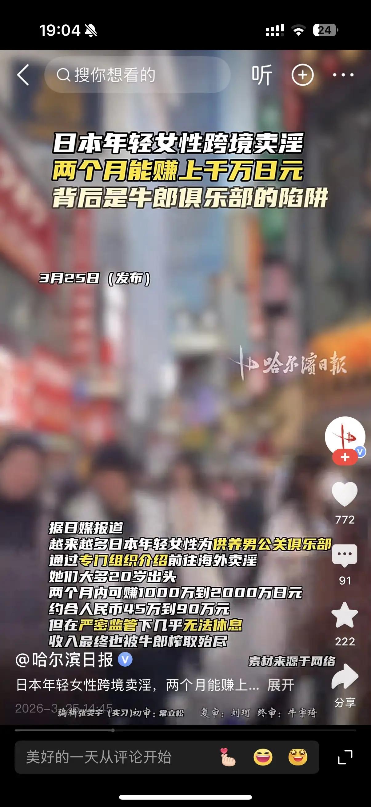日本女性为供养牛郎跨境卖淫:一场被“情感消费”吞噬的人生悲剧 据海报新闻报道,越来越多日本年轻女性为供养牛郎俱乐部的“男公关”,选择跨境卖淫。她们两个月赚取1000万到2000万日元(约45万-90万人民币),却几乎全部被牛郎以“指名费”“香槟塔”等方式榨干,陷入“卖淫—供养—再卖淫”的恶性循环。 专家指出,这是“经济绑架”与“情感操控”的双重陷阱。牛郎经过专业话术培训,诱导女性将“消费能力”等同于“自我价值”,形成扭曲的情感依附。这类现象暴露了消费主义对人性的异化——当“为爱发电”沦为资本收割的工具,受害者既是悲剧的承担者,也是扭曲价值观的投射。 此案警示我们:情感消费需要理性边界,社会需要制度保护。当你为“爱”透支一切时,请先问一句:这份“爱”,究竟是谁在受益? 互动话题: 你如何看待“情感消费”与“情感绑架”的边界?欢迎留言!