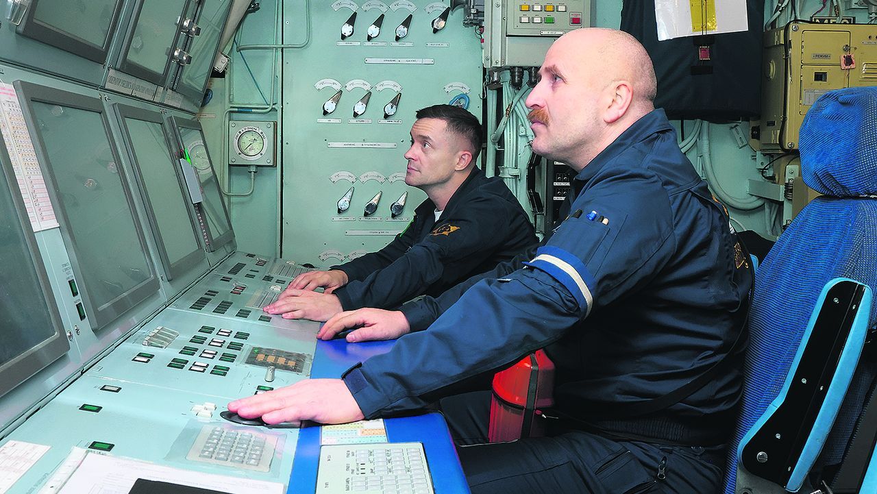 ——我们部门的责任区覆盖全船,从第一舱到第八舱。我们负责潜艇总排水和消防系统、通海阀和阀门以及其他损管手段的完好性和可用性。因此,在海上我有自己的值班岗位,在操控台前监控数据。我们每四小时与其他操作员换班。当然,在岸上我们也执行类似的操作,只是少一些。我们不会进行潜艇的下潜和上浮操作。但通风和冷却系统始终在运行,并且总是需要水。每天我们都会操作些东西,打开、接收。比如说,今天在基地需要接收水。我们在停泊时不生产水,但各种生活细节都需要它。我也经常担任潜艇的值班副手,进行武器值班。职责——控制进出人员、文职专家,管理日常作息,执行命令。向相关人员传达指挥员的所有命令和指示,进行通讯联络,接听电话。你需要全面了解此刻谁在哪里,以及在这24小时内艇上发生了什么,"潜艇兵解释了他的职能。