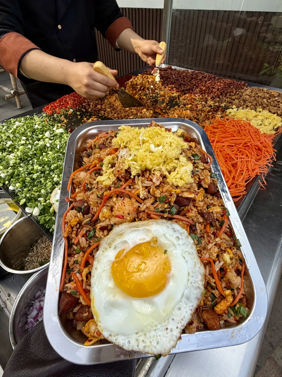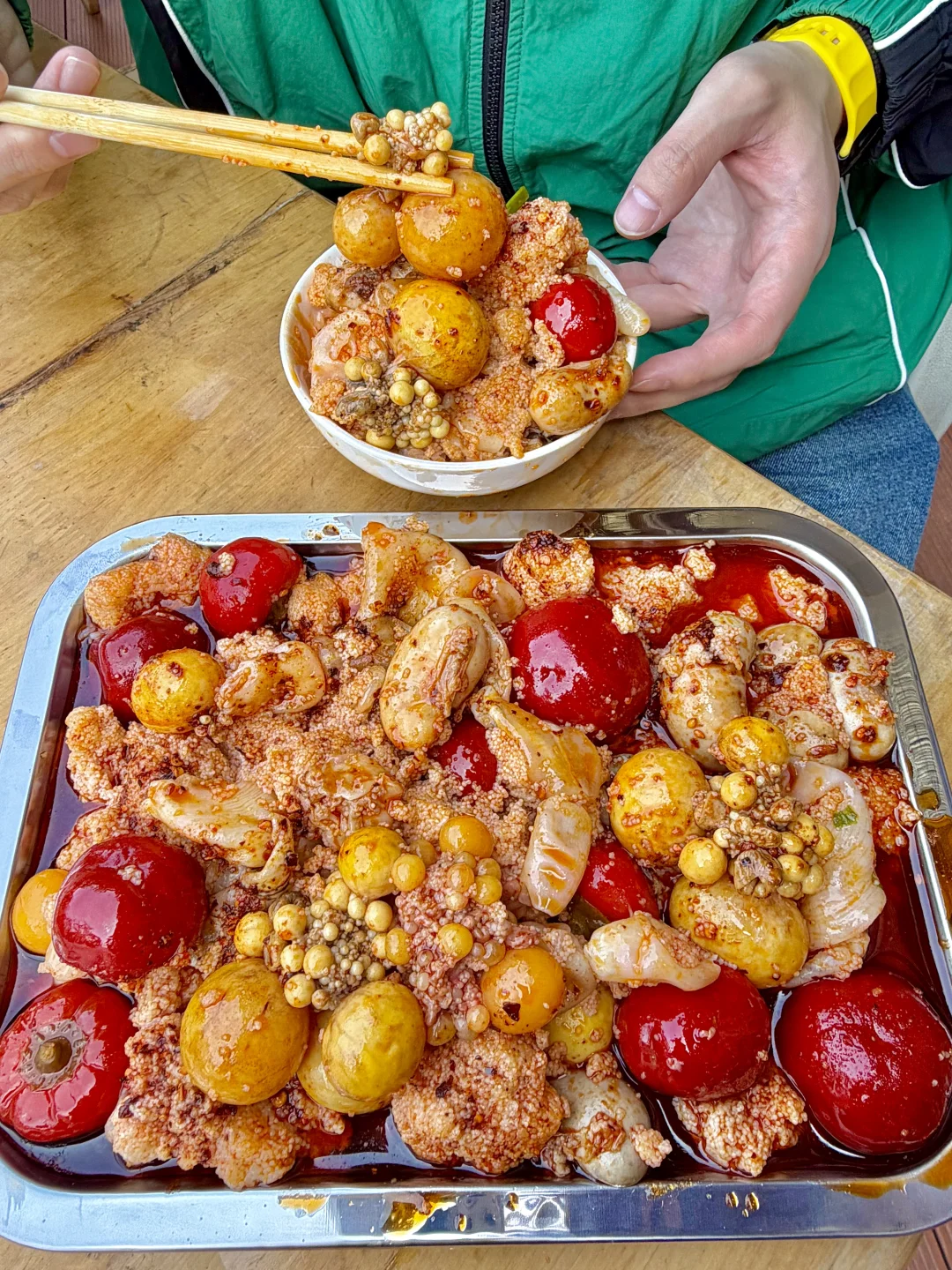 我愿称之为近期吃到最夯的一顿夜宵! 一定带带男朋友来吃,他直接美死了! 招牌公鸡鱼蛋杂锅到底是谁发明的啊?满满的鱼籽鱼杂和提灯鸡肾,特意点给男朋友补补的哈哈!搭配脆哨炒饭拌在一起,真的好吃!! 一周和男朋友连吃三次了夜宵!!!真的是我在双流会一直去的的店!!!
