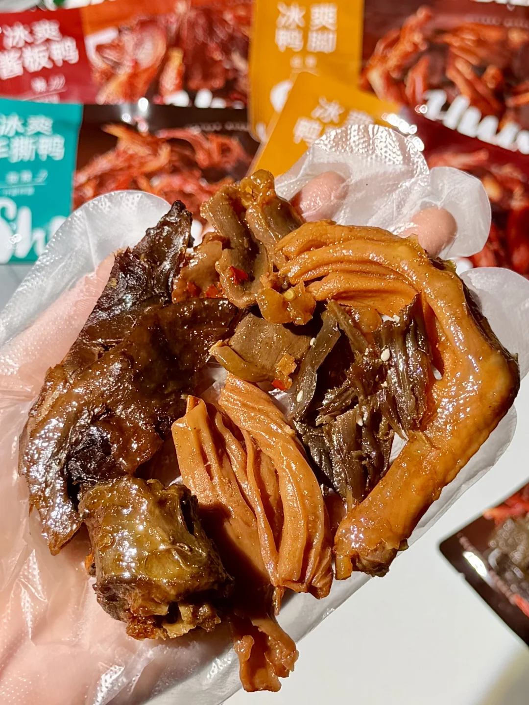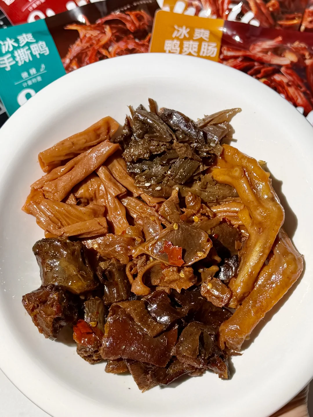 里面种类也多,酱板鸭、鸭脖、鸭脚、鸭爽肠、鸭肫、手撕鸭,每个部位都好好吃🤤