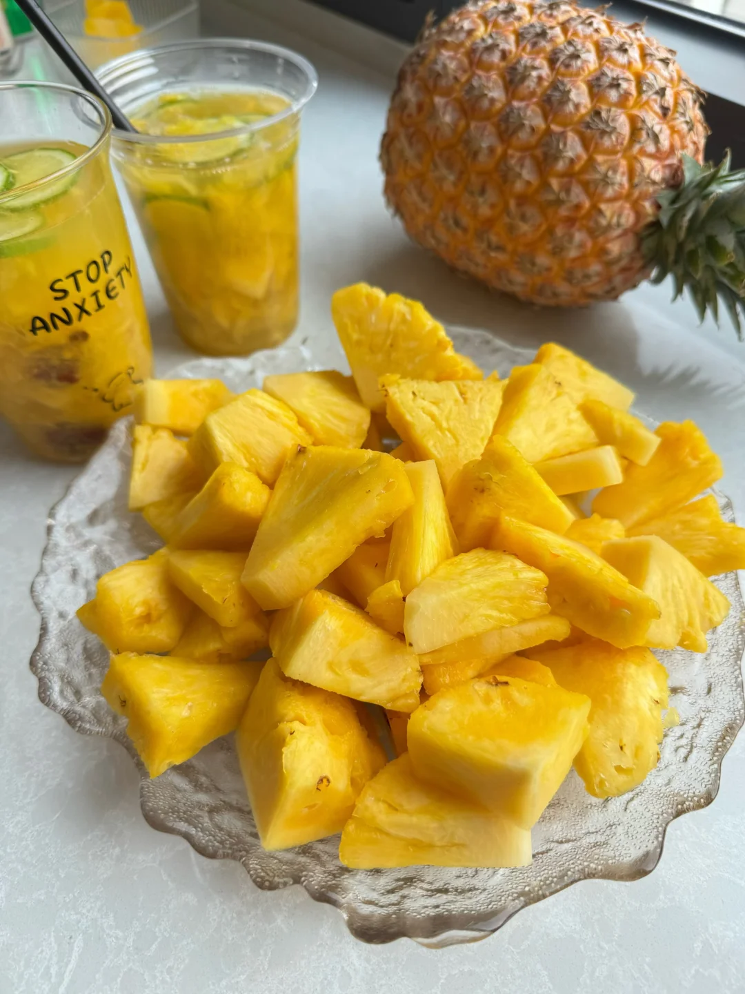 刚拆箱就被海南金钻凤梨的香气冲晕! 每颗都沉甸甸带自然熟斑,果皮泛着诱人的金橘色, 果眼浅到几乎不用挖,强迫症狂喜✨ 不用泡盐水、不用挖果眼, 削皮就能啃是对懒人终极温柔,9甜1酸的黄金配比, 甜而不腻还带点清爽果香,连果芯都软嫩无渣, 完全不扎嘴!这波正宗海南产地直发的金钻凤梨, 品质真的吊打超市,闭眼囤不踩雷,错过等一年!