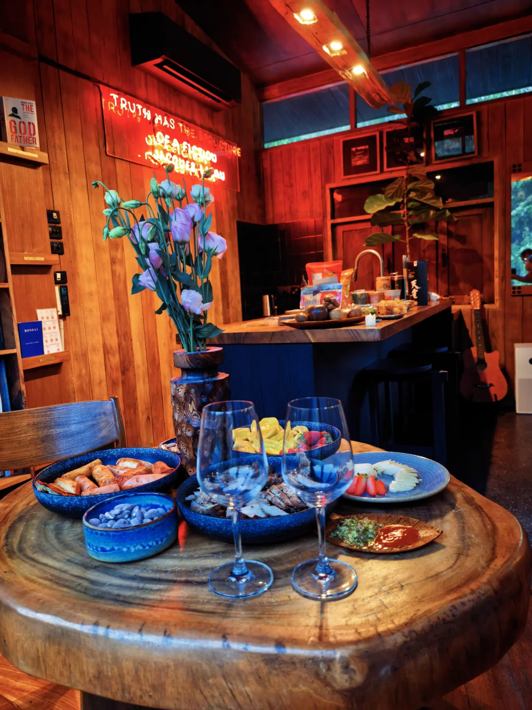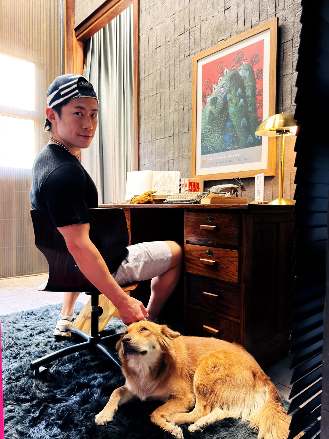 惊喜地发现他竟然是Virginia Woolf的书迷,到处散落着他从各地收藏的老物件和艺术品,WiFi 密码是whydontyouread,床背板是一句话:this page is intentionally left blank.夜晚我们在月光下边看萤火虫边饮酒聊天……