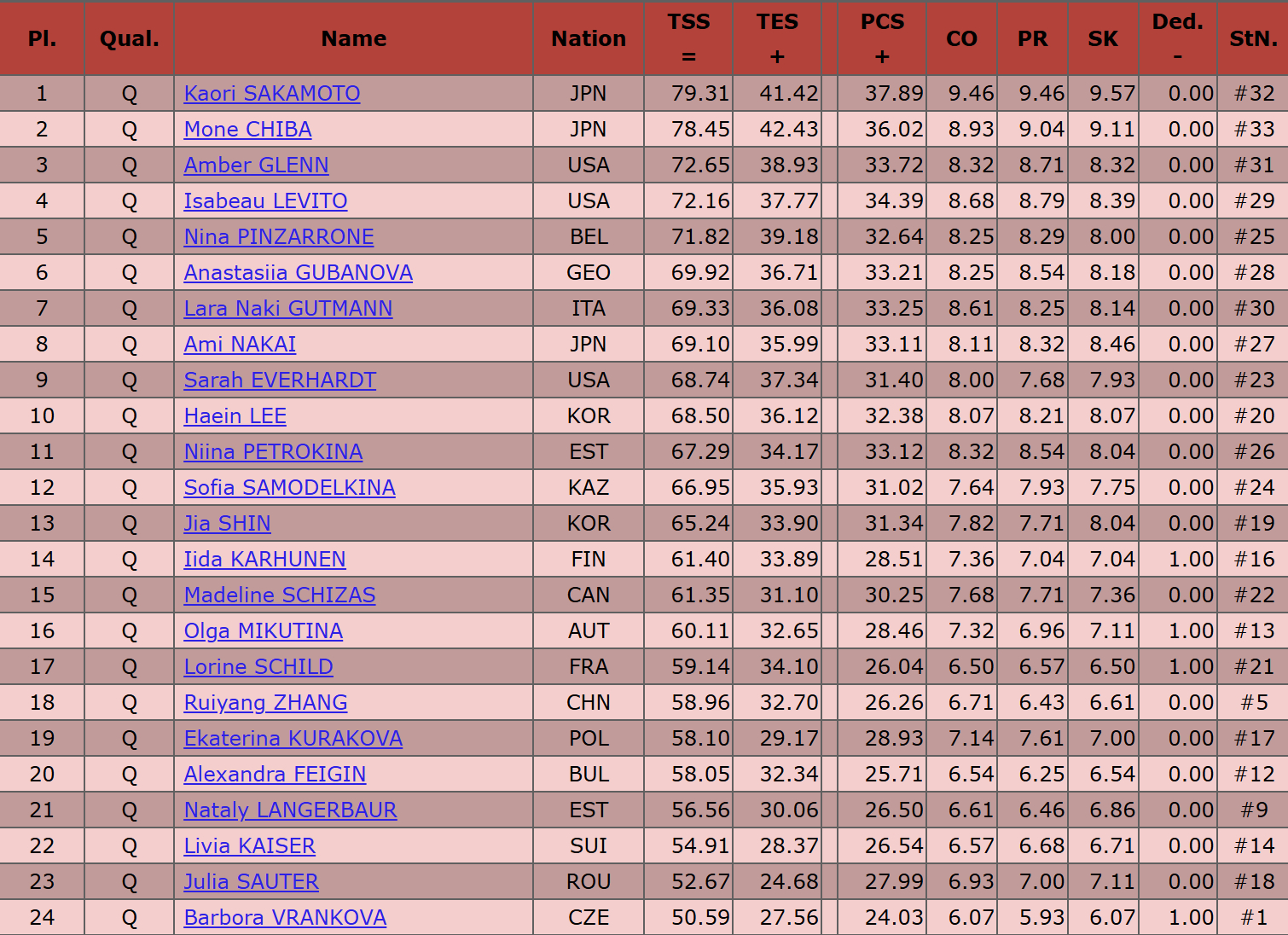 2026国际滑联世界花样滑冰锦标赛女单短节目全部结束,中国选手张瑞阳获得成绩58.96分,在全部33名选手中排在第18名晋级自由滑。日本选手坂本花织成绩79.31分排在短节目第1位。