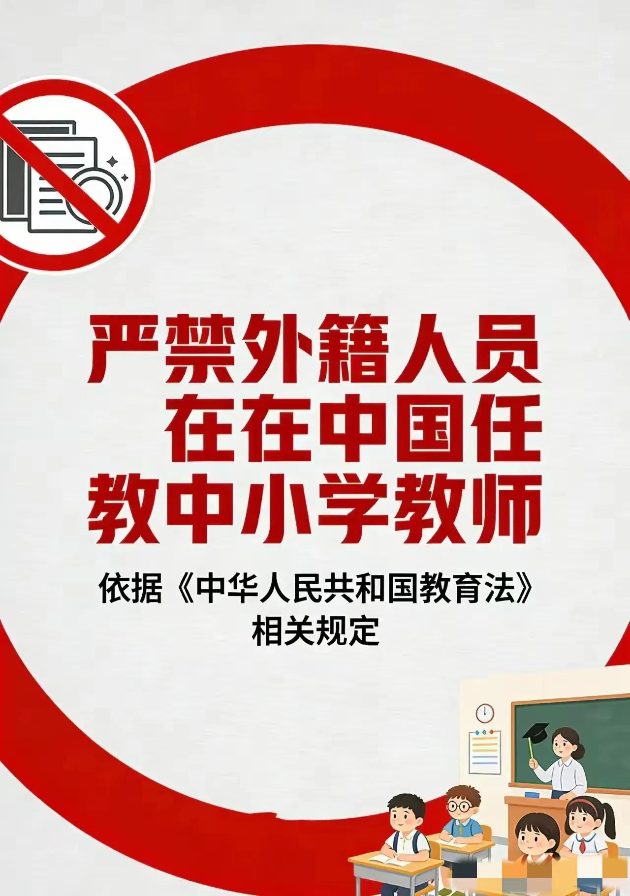 看到法学专家陈枫提议“禁止外籍人员在中小学任教”,我第一反应就是该! 说实话,这事早该放到台面上扯扯了。 国内基础教育阶段,外籍人员任教的乱象,已经积攒了很多年。不少民办中小学、课外培训机构,只把外教当成招揽生源、抬高收费的噱头。机构根本不会认真核查外籍人员的学历、资质,背景筛查更是流于形式。只要是外国人,就被包装成资深名师。普通家长被所谓的国际化教育误导,花了高额学费,却得不到对应的教学质量。 市面上长期存在大量无证上岗的外籍从业者。相关部门这些年公开查处过不少案例,中介伪造证件,把毫无教学经验、品行不明的人送进校园。部分人员还有不良过往记录,审核漏洞,直接给在校孩子埋下安全隐患。我国早有规定,校园从业人员必须经过严格筛查,外籍人员理应执行更高标准,现实里却屡屡出现监管缺位。 孩子年纪小,心智还不成熟,正是塑造家国情怀、认同本土文化的关键时期。义务教育的核心,是守住育人底线。外籍人员的成长背景、价值观念,和我们的教育体系差异很大。个别外教在课堂输出不当观点,潜移默化影响孩子认知。这种隐性的文化渗透,危害远比教学水平不足更严重。 大众一直存在一个误区,盲目觉得外国人教外语效果更好。说到底,这就是盲目的崇洋心态。真正的语言教学,靠的是专业方法和课标适配。国内持证上岗的本土老师,熟悉教材,懂学生痛点,专业度远超只会口语、不懂教育逻辑的外籍人员。 外教聘用中的形式主义,浪费了大量公共与家庭教育资源。学校花大价钱引进外教,只为对外宣传,不落地提升课堂质量。教学过程不透明,家长无从知晓真实情况,既加重了家庭负担,也起不到教育作用。 我们不能把规范用工,曲解成拒绝外来交流。高校引进外籍学者开展学术合作,完全合理。大学生具备独立分辨能力,未成年人没有。受众不同,防护标准就必须不同,保护孩子是最基础的底线。 教育部一直在收紧外教管理,严查无证任教、虚假宣传等违规问题。这位法学专家的提议,只是从规则上补齐漏洞,斩断行业利益乱象,让基础教育回归原本的纯粹。 校园安全永远排在第一位。基础教育不需要花哨的外来标签,不需要表面的营销噱头,只需要合规、专业、扎根本土的师资队伍。放下对外籍身份的盲目追捧,用心培养优质本土教师,守住中小学教育阵地,才能给孩子打造安全正向的成长环境。触碰未成年人教育底线的行为,都应该严格管控。 各位读者你们怎么看?欢迎在评论区讨论。