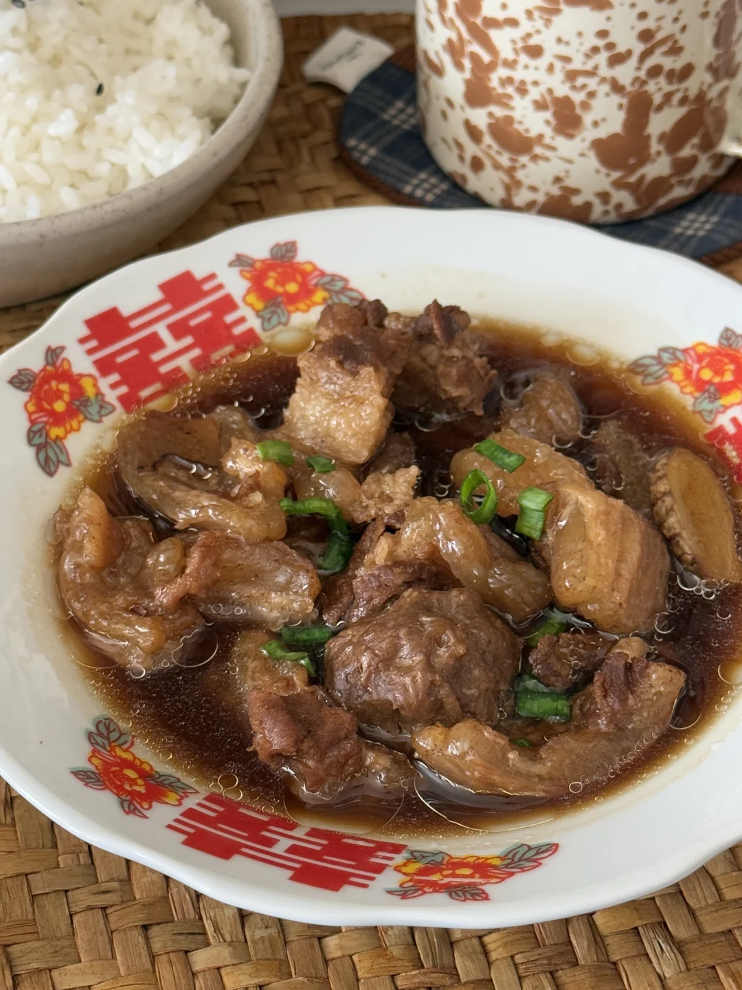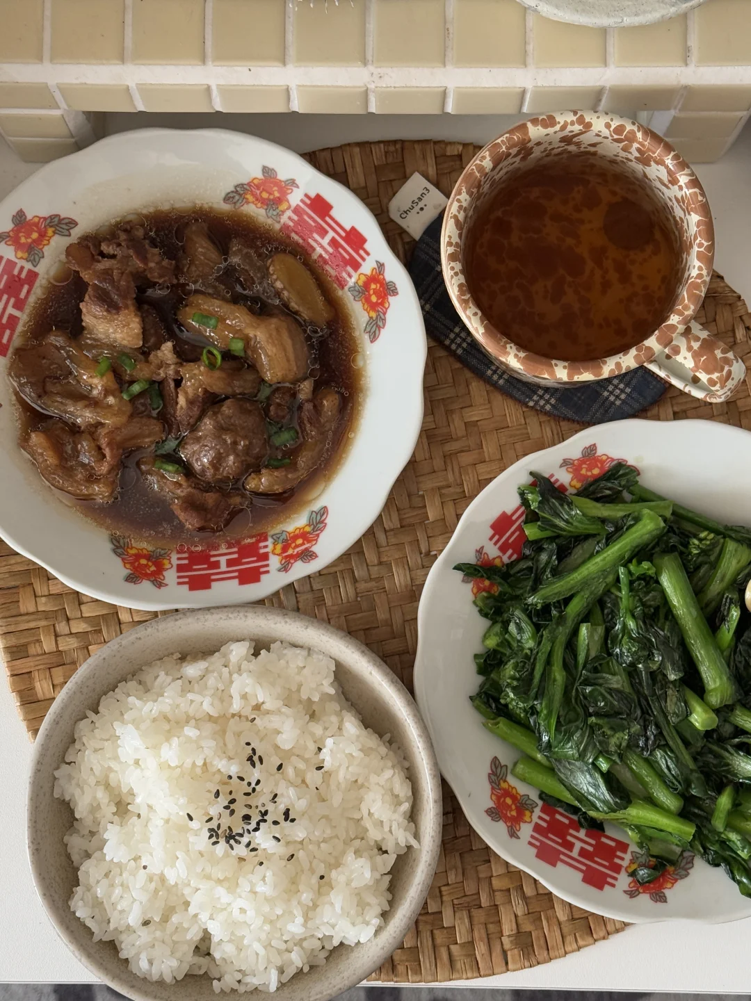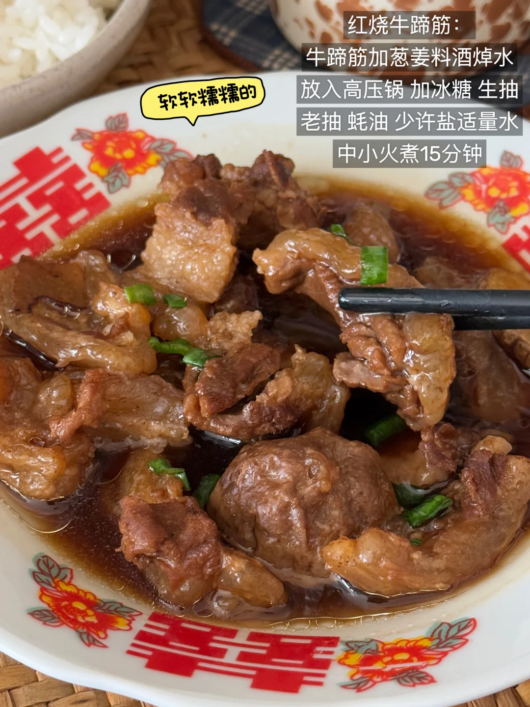 一顿热乎的家常午餐, 真的能给下午的工作加满能量🥹 - 今日午餐🥣 - ▪️红烧牛蹄筋 ▪️清炒菜心 ▪️桂圆红枣茶 - 牛蹄筋真的是午餐硬菜首选!高压锅一压,软fufu糯叽叽,入口直接化开,裹满浓稠的酱汁,拌米饭我能吃两大碗!