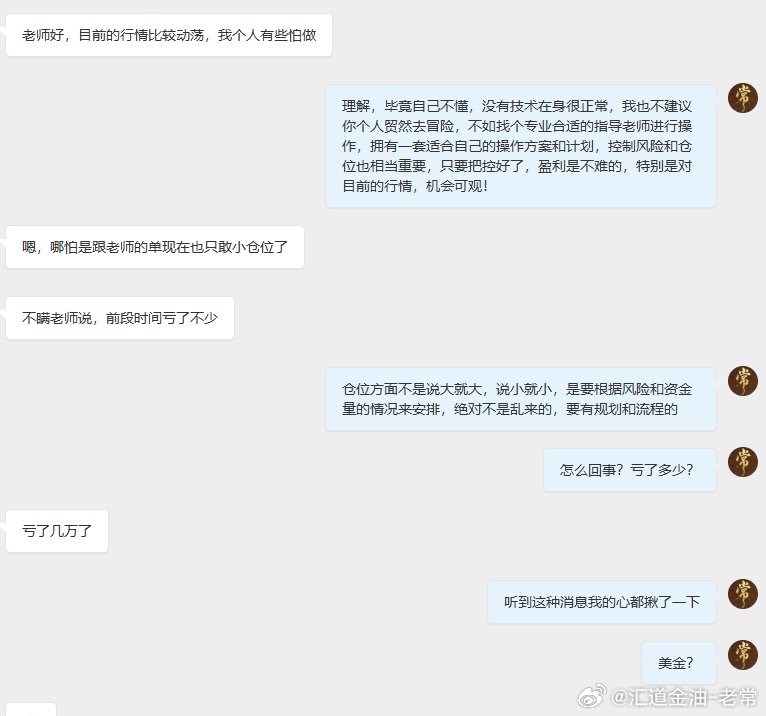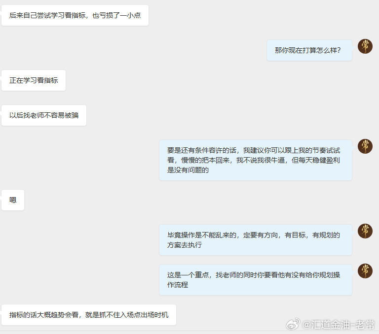 投资里,选择永远比努力关键,决定结果的,从来不是你有多少能力,而是选对了方向!圈选错题不可怕,怕的是不修正。现在投资市场鱼龙混杂,选错导师,血汗钱就成了学费。我不敢保证每单都赚,但老常实战团队能承诺:人品和负责排第一,更会为你定制专属回本方案。只要你执行力够,剩下的交给我们。近期行情明眼人都懂,机会多、空间大,方向对了,稳拿利润不难!