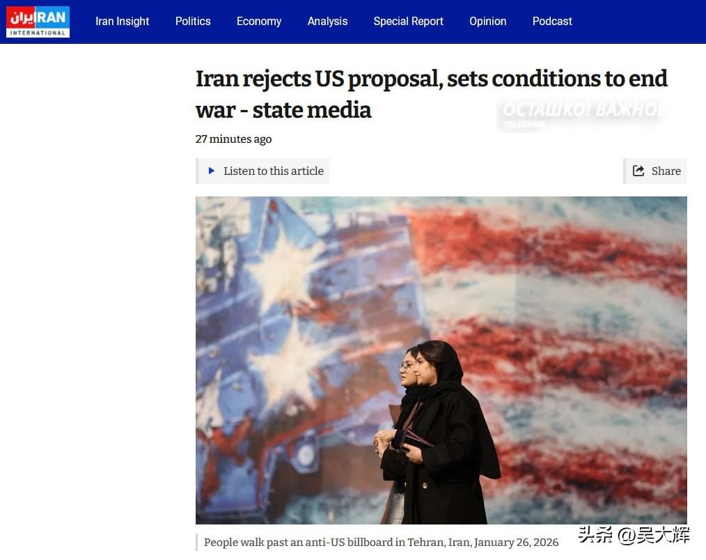 伊朗拒绝停火,并提出结束战争的六大停火条件 1. 敌方完全停止侵略与杀戮行为。 2. 提供切实保证,不再对伊朗发动战争。 3. 明确且有保障的战争赔款。 4. 停止所有战线的战事,包括地区所有抵抗组织参与的战事。 5. 国际社会承认并保障伊朗对霍尔木兹海峡的主权管辖权。 此前媒体还曾提及一项附加条件:保留伊朗的导弹计划。