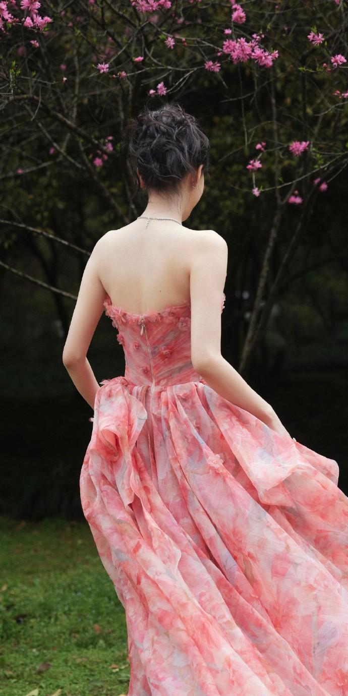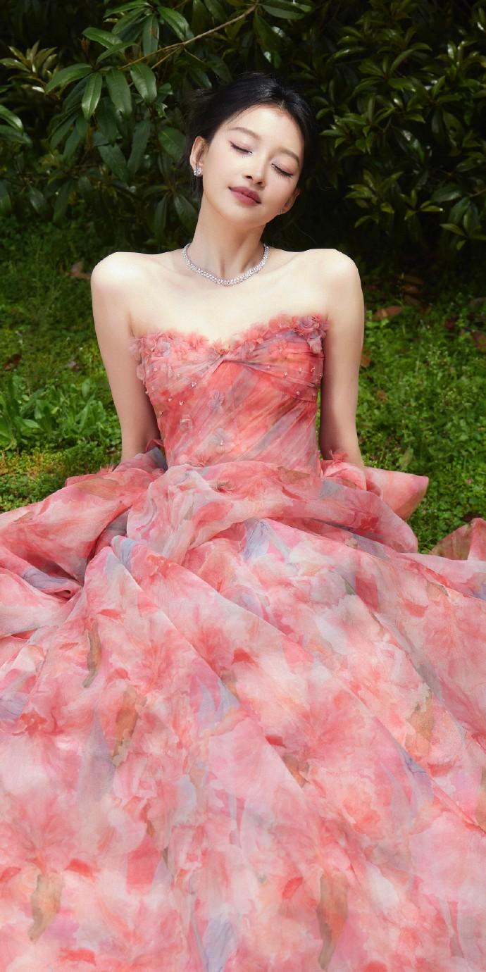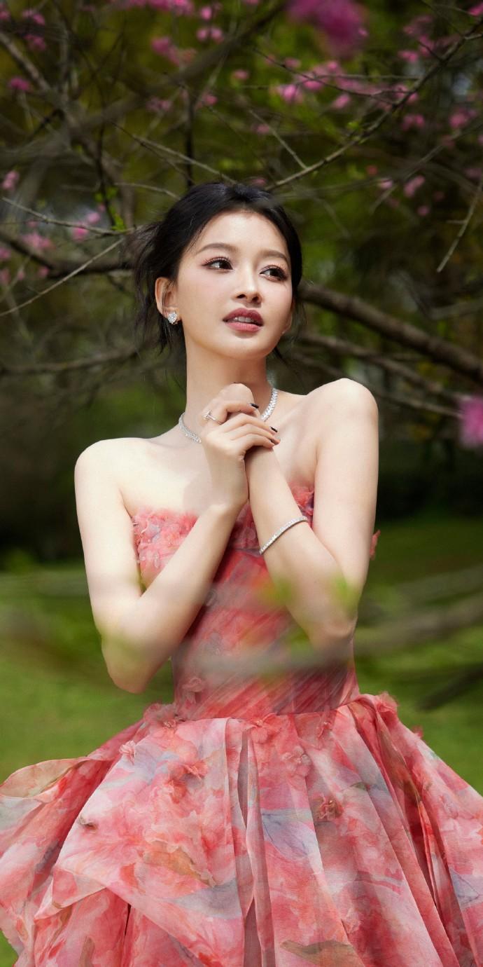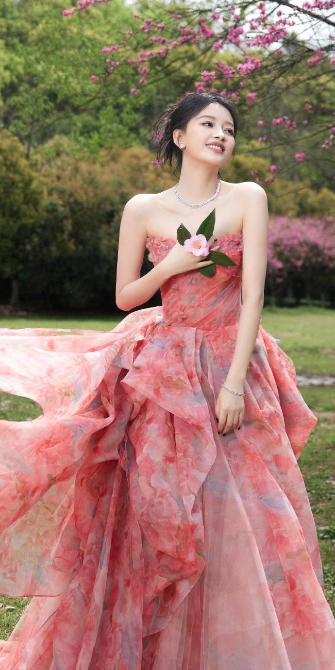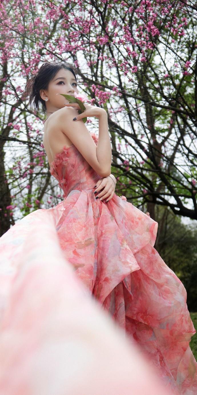 春日里的孙怡,就像一朵绽放的粉红花朵,身着粉红抹胸长裙,完美展现出介于少女与轻熟之间的独特美感。 那抹粉色不是幼稚的甜腻,而是带着成熟韵味的浪漫。她的长发如瀑布般垂落在肩膀,微微卷曲的发梢带着慵懒的气息。精致的妆容恰到好处,眼妆深邃迷人,唇色与裙装相呼应,娇艳欲滴。 她漫步在春意盎然的花园中,裙摆随风飘动,她成为了这春日里最耀眼的风景。