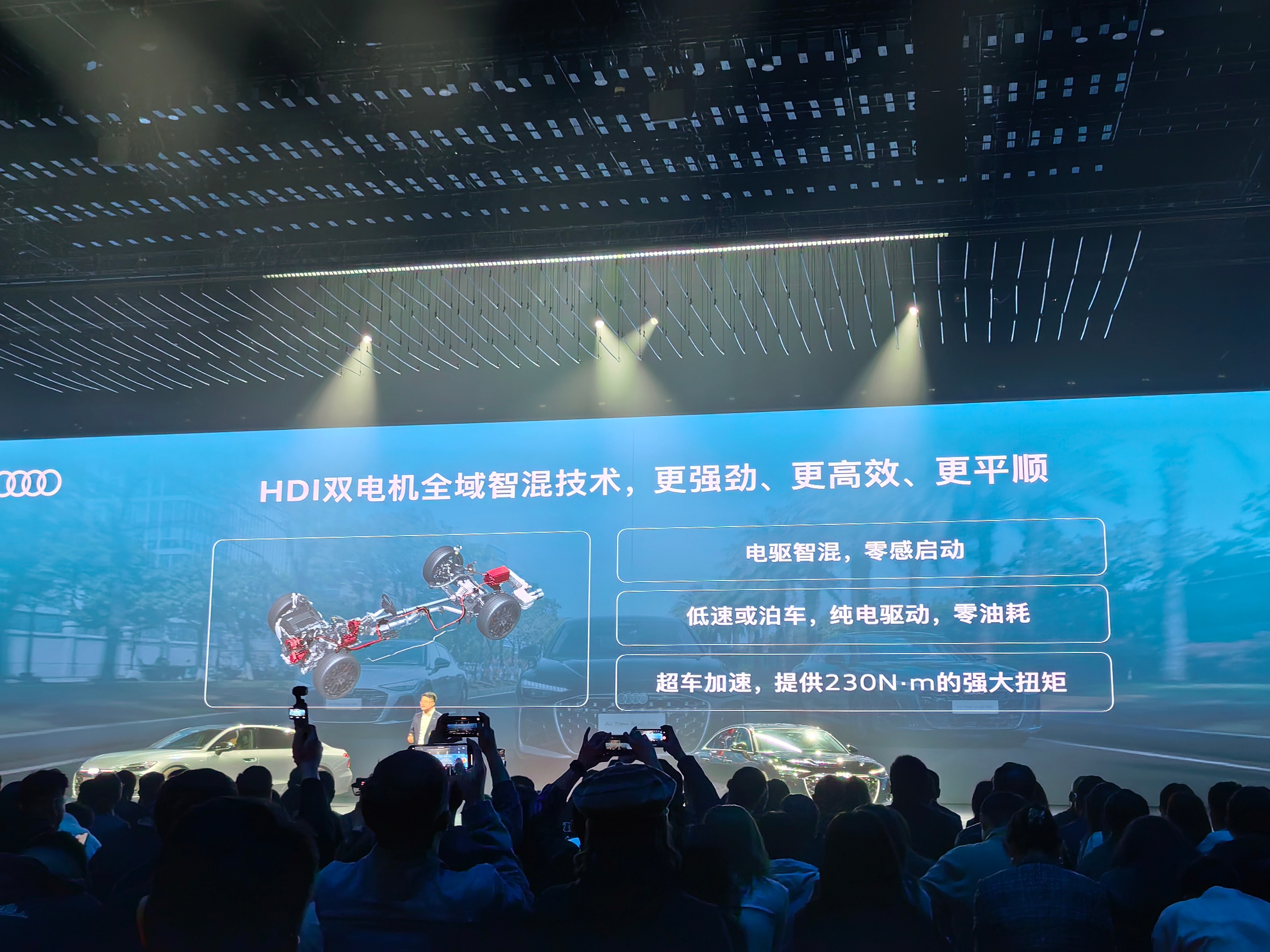 动力是另一个亮点,2.0T高低功率、3.0T V6 三种选择,新能源时代,大排量六缸非常少见了,平顺+声浪,后劲儿更足的加速感。HDI双电机全域智混系统,低速和泊车时纯电驱动,提高燃油经济性。