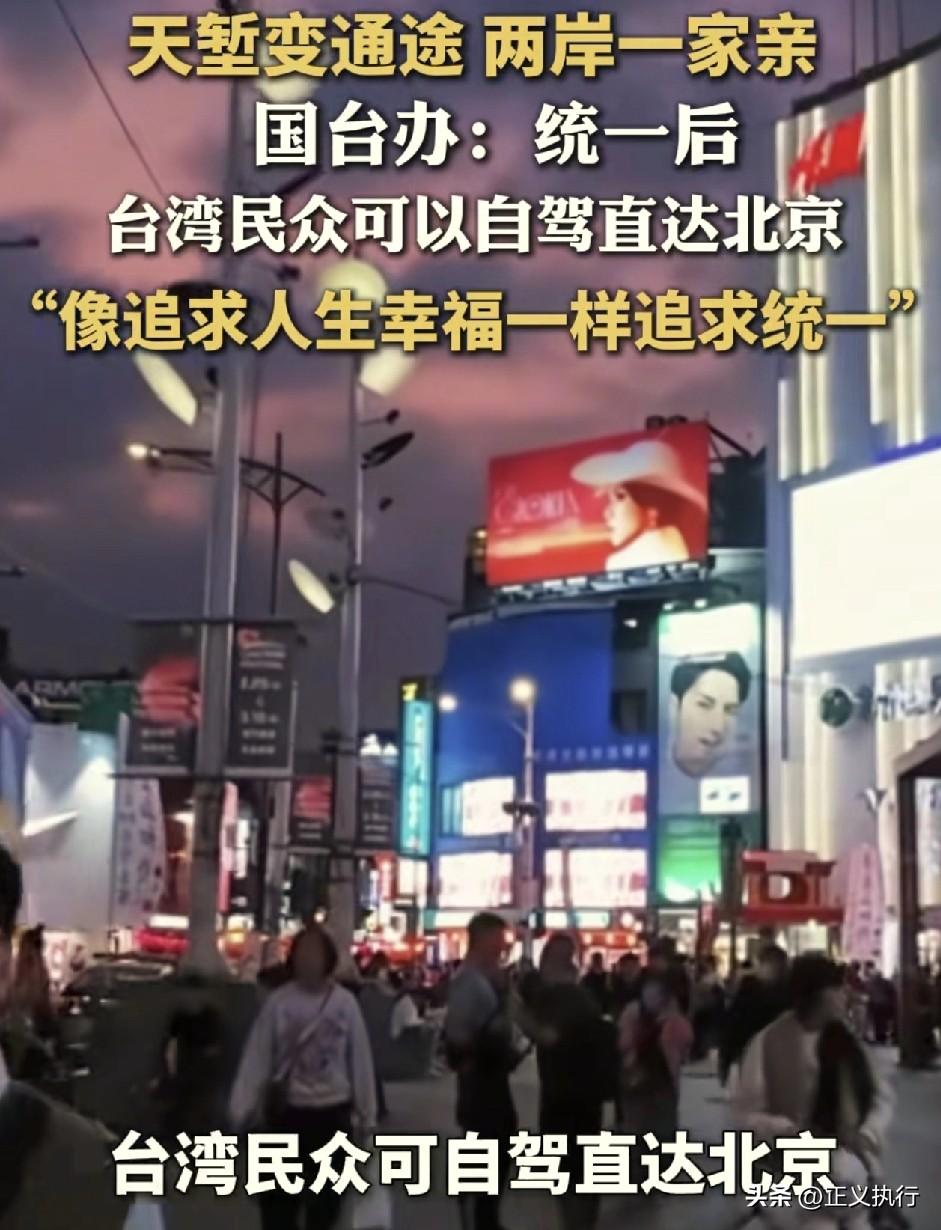 最新消息! 距离开车自驾去台湾观光的日子越来越近了。 根据大众新闻网报道称,国务院台办3月25日举行例行新闻发布会,发言人朱凤莲表示:和平统一后,大陆强大的基建能力,将为台湾基础设施更新升级提供有支持,包括建设环岛高铁,推进海峡快速通道等,届时台湾民众可从本岛出发沿京台高速公路自驾到北京。 回来吧,祖国真的很美好,保持你们自己的制度和生活方式,又可以享受祖国的高速发展,何乐而不为! 到时不仅你们可以开车自驾到大陆游玩、寻根,还可以品尝大陆各个地区的特色美食,比如,陕西的羊肉泡馍、河北的牛肉面板面、北京的烤鸭、重庆的火锅、江苏的鸭血粉丝汤、河南的烩面、山东的煎饼卷大葱等等。我们也可以开车自驾去畅游体验台湾省的日月潭和小故宫。