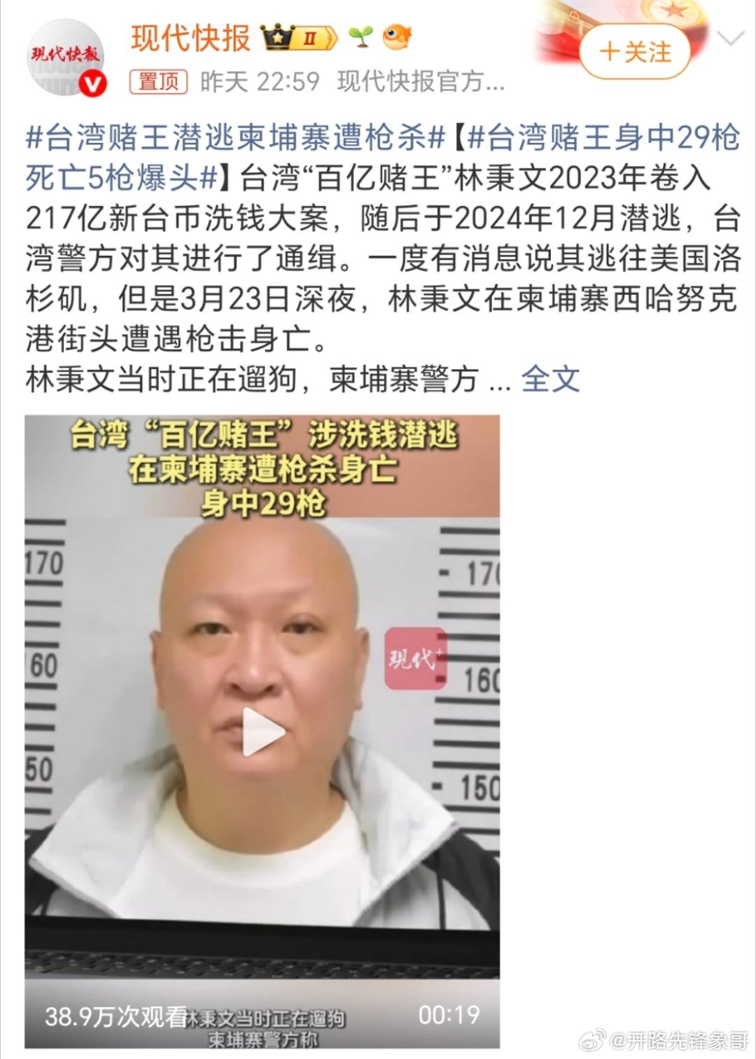 台湾赌王身中29枪死亡5枪爆头这能不能算蛙蛙的当代枭雄来头不小啊?“台湾赌王”