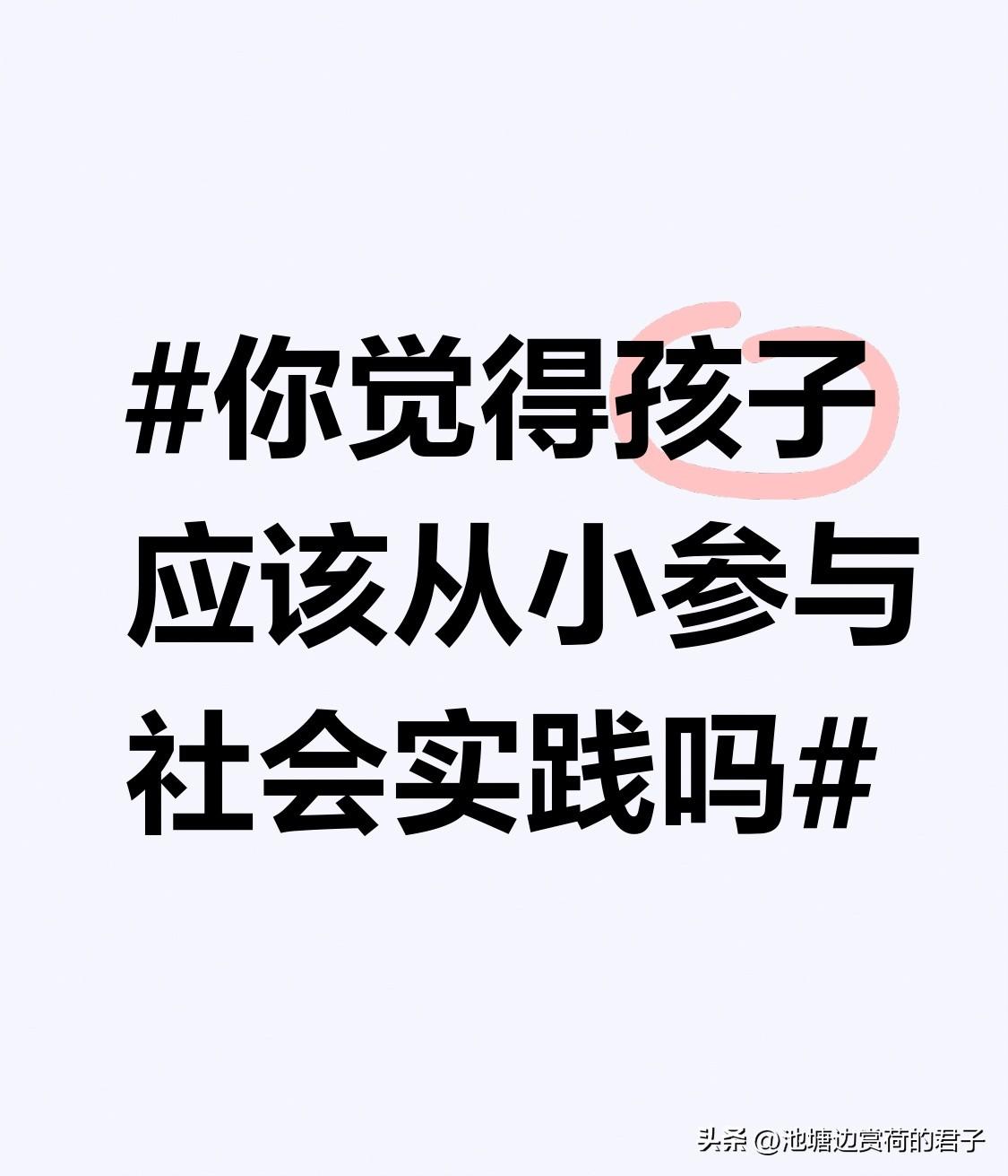 你觉得孩子应该从小参与社会实践吗 孩子从小参与社会实践很有必要。我家亲戚小孩,小学时参加了社区环保活动,跟着大人一起捡垃圾、宣传环保知识。这孩子原本有点内向,活动结束后变得开朗了,还懂得了保护环境的重要性。 还有个朋友的孩子,假期去餐厅当小服务员,体会到父母赚钱的不易,花钱不再大手大脚。从小参与社会实践,能让孩子接触不同的人和事,锻炼沟通能力和适应能力,还能树立正确的价值观。所以,我觉得孩子应该从小参与社会实践。