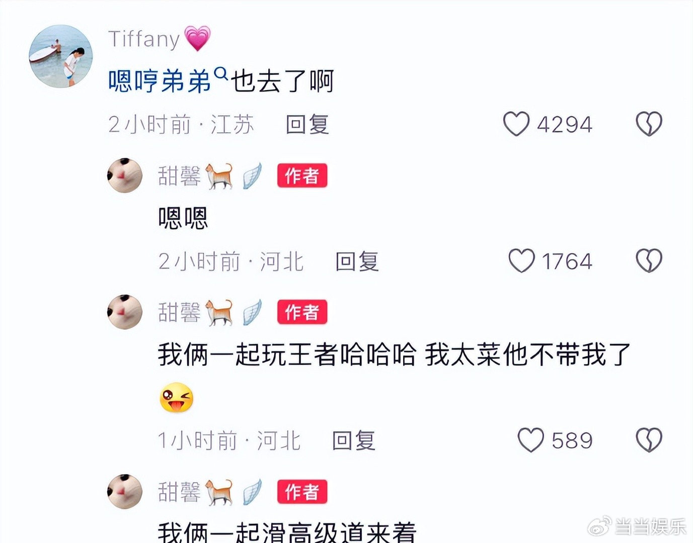 甜馨身着简约的黑色T恤搭配牛仔裤,嗯哼同样是一身休闲装扮,全然不存在星二代常有的那种带有刻意打扮痕迹的距离感。网民也讲,两款小孩平平静静地坐着交谈,行为举止既大方又自然,一眼望去便是家教优良的孩童。这种真实的日常状态,反而更让人觉得亲切。网友集体回忆杀