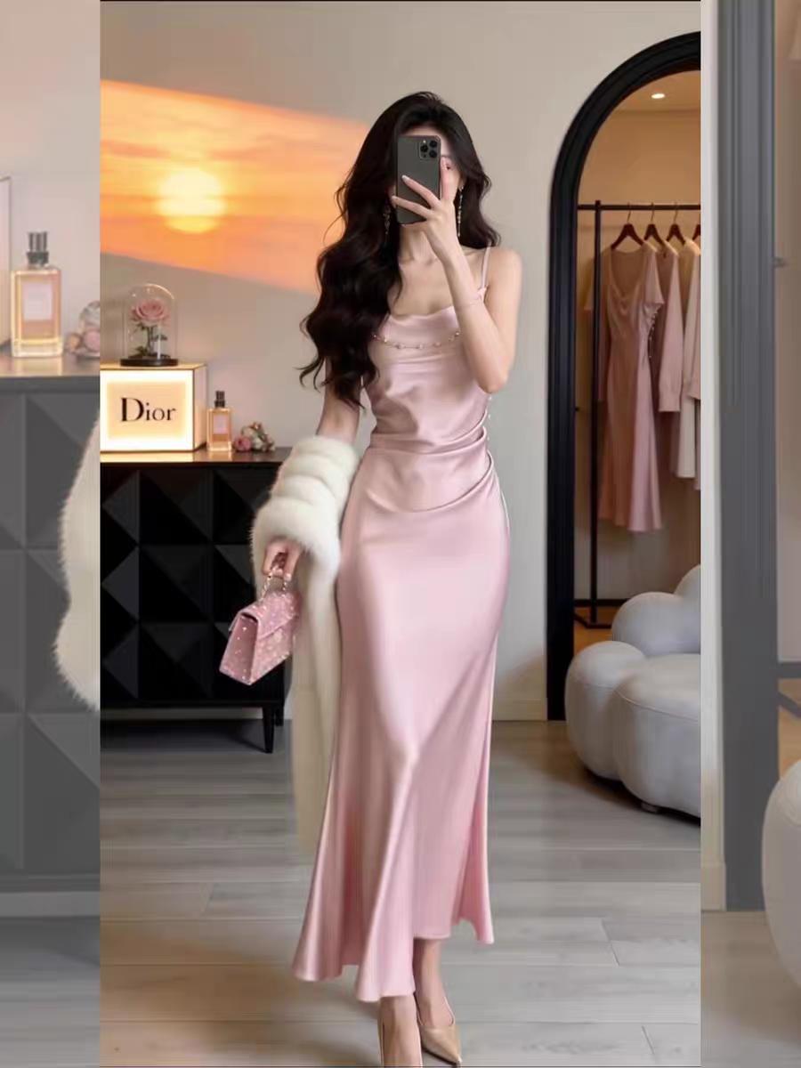 精致的灰色缎面长裙,能给你带来足够的自信!缎面长裙穿搭 时尚穿搭