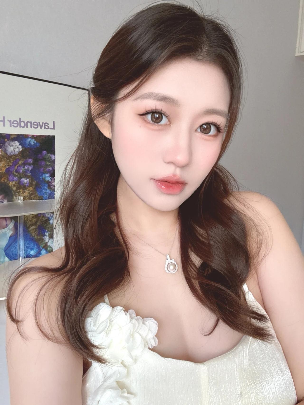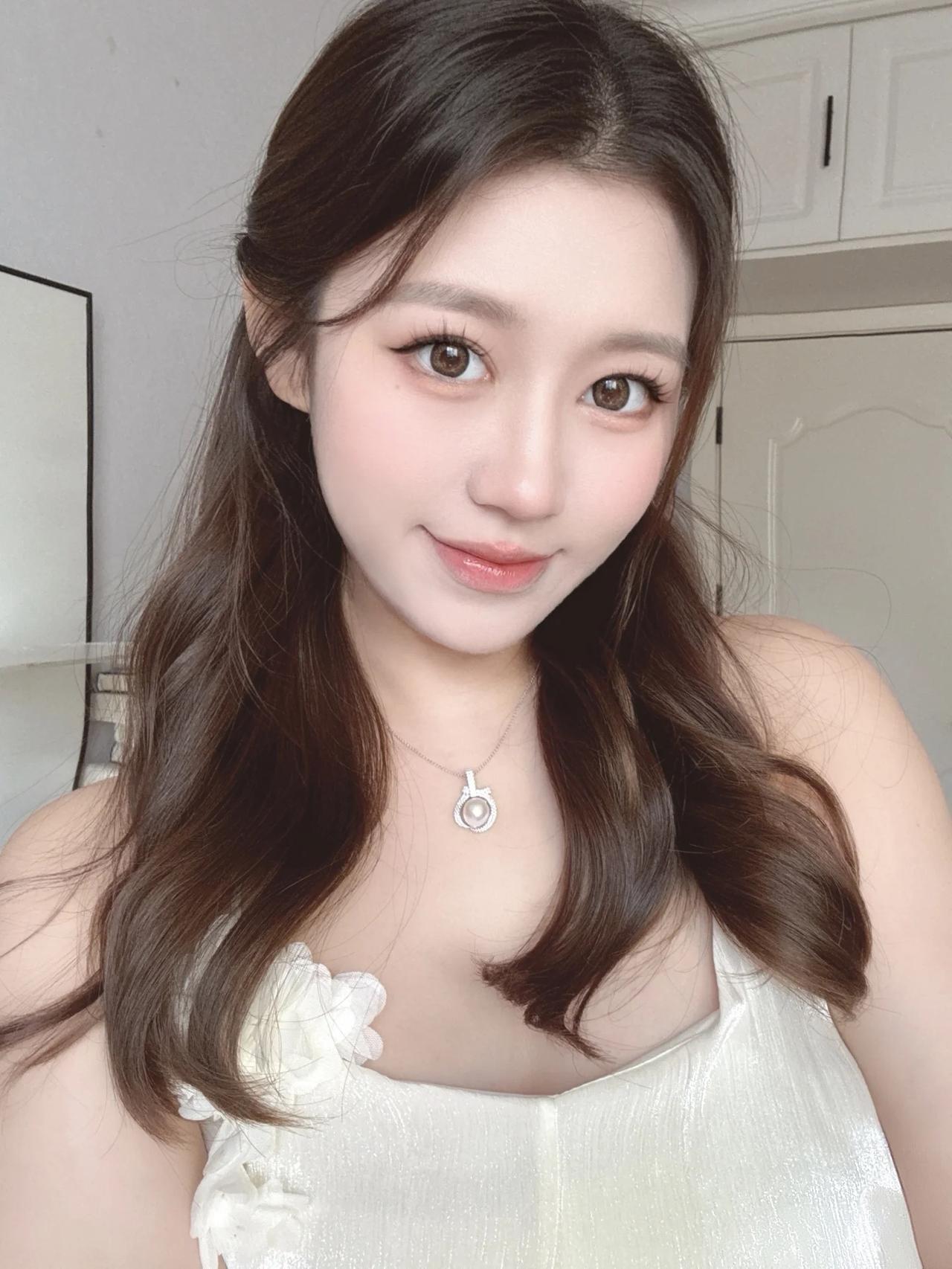 她身着一袭白色吊带裙,裙身一侧点缀着精致的立体花朵装饰,增添了几分浪漫与温柔。细腻的面料泛着微光,勾勒出优美的肩颈线条,尽显少女的娇俏与性感。 一头温柔的大波浪卷发自然垂落,发丝蓬松有光泽,衬得肌肤胜雪。她的眉眼弯弯,眼眸清澈明亮,时而俏皮托腮,时而轻抿红唇,表情灵动多变,甜美的笑容极具感染力。 颈间的精致项链作为点睛之笔,更添优雅气质。整体妆容清透自然,粉唇微扬,将清纯、甜美、温柔的特质完美融合,每一帧都散发着令人心动的少女气息。