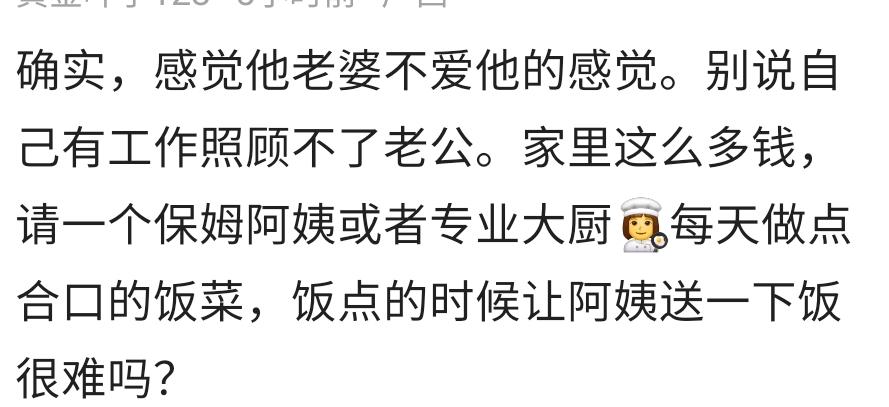 有网友看了张雪峰经常吃外卖,甚至开始责备起他的妻子了。 理由是,张雪峰这么辛苦,应该亲自做饭送去,而不应该让他吃外卖。哪怕雇个保姆呢? 因为谁都知道无论外卖如何丰盛,经常吃也会吃坏身体。 所以从这个角度看,她对张雪峰的关心不够! 这种传统角度,虽然有一点道理,但有点道德绑架的意味了。。 也有网友回击,男人的健康要女人照顾,那女人的健康呢?