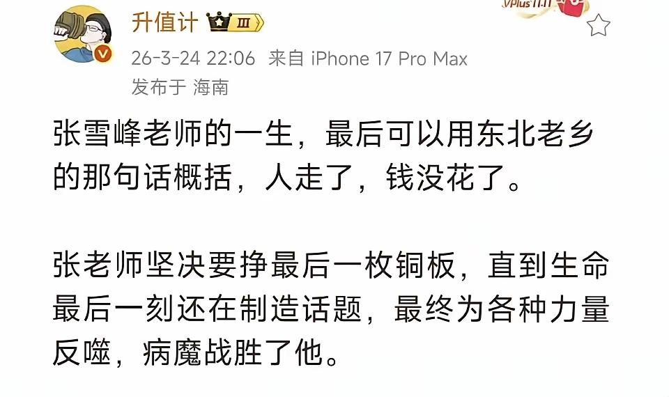 这人,硬吃张雪峰的人血馒头,为何这般恶毒? 仔细一看,都是搞教育的,真应了那句话,同行才是赤裸裸的冤家 嫉妒,让他面目全非。 在世时可以说道不同不相为谋,去世了这么说真是缺大德了[黑线]