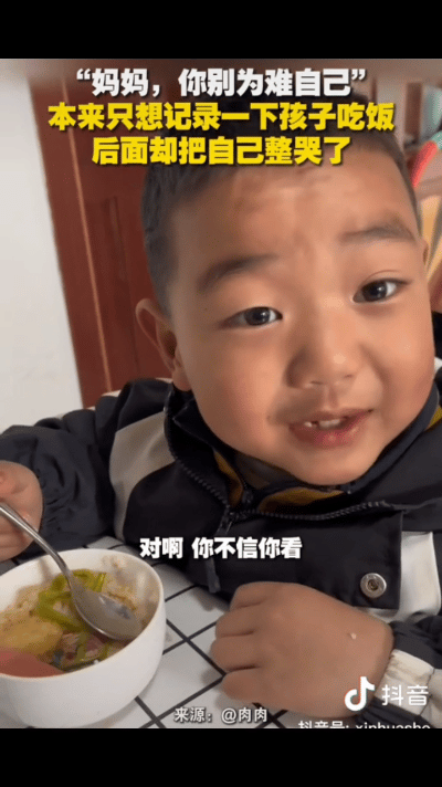 甘肃一妈妈看孩子吃饭吃的很乖的样子,就想着偷偷记录一下,孩子看到后:“妈妈,我有什么好拍的!”妈妈一开始以为孩子是嫌弃自己,谁知孩子一番后将妈妈给整破防了! 网友:“原来我们一直都误会了孩子。” 3月25日,一位年轻妈妈像往常一样,看着儿子大口吃饭,眼神里满是慈爱,就偷偷拿起手机想记录一下。 这时,儿子看到后说:“妈妈,我有什么好拍的?” 妈妈说:“因为我想记录一下你吃饭的样子呀!” 儿子有些许不耐烦:“快吃,你饭都凉了,还拍呢!” “我每天都变着花样给你做呢。”妈妈的语气里有点自责。 然而,下一秒,正在大口扒饭的儿子突然停住了,一脸严肃地看着妈妈,眼神里透着认真。 “妈妈,你别为难自己好不好?你做什么都好吃!不信你看…”说完又扒了几口饭,吃得津津有味。 “是吗?!”妈妈笑着问。 “对啊,来给你一口。”说完,儿子从自己碗里挖了一勺饭,给妈妈喂了一口,同时并伸出拇指给妈妈点赞。 接着,妈妈说:“你应该不嫌弃妈妈的嘴巴吧?” “嗯,不嫌弃!”儿子回答的很肯定。 妈妈又说:“妈妈是很爱你哟,现在你还小,再过几年,你长大了,估计就该嫌弃妈妈的嘴巴了。” 这句话,是多少妈妈深夜里的独白啊!我们害怕衰老,更害怕因为衰老和无能,被爱着的孩子抛弃。 听到这话,小男孩急了。 他把碗往桌上一放,眉头紧锁,甚至有点生气地打断了妈妈:“妈妈你别胡说,你怎么能这么想,哪有孩子会嫌弃自己父母的,我刚才不都给你喂饭了吗?…嗯,好吃!” 儿子再次给妈妈伸出双手的大拇指,给妈妈点赞,并露出甜甜的笑… 这一刻,空气仿佛都凝固了,妈妈的眼眶湿润了… 这十几秒的对话,足以让妈妈们知道: 原来,在孩子简单的逻辑里,爱就是爱,不需要你多优秀,不需要你多完美,仅仅因为你是妈妈,你就是他的全世界。我们总以为自己是在单方面地付出,是“俯视”着孩子在成长,却忘了孩子其实一直在用一种仰视的、纯粹的视角,在爱着我们。 作家冯唐曾说:“实在放不下的时候,去重症病房或者墓地看看,你容易放下;你也就知道,没什么是放不下的。”而对于妈妈们来说,实在焦虑不安的时候,看看孩子的眼睛,你也就知道,没什么是值得你自我苛责的。 看完这个视频,我久久不能平静。 现在的育儿环境太卷了,我们要当完美妈妈、要做超人妈妈。我们总是担心饭做得不香、辅导作业不够耐心、给不了孩子最好的学区房。我们在深夜里无数次崩溃,觉得自己做得一塌糊涂。 但实际上呢?我们在孩子眼里,早就是满分了。 孩子对我们的爱,往往比我们要想象的深厚得多,也纯粹得多。这种爱不附带任何条件:不因为你升职加薪而增加,也不因为你饭菜做的不好而减少。 最后,我想对所有焦虑的妈妈说一句或许有些“扎心”的话: 很多时候,不是孩子离不开我们,而是我们离不开孩子;不是孩子在挑剔我们,而是我们那颗悬着的心,始终不肯放过自己。 对此,你怎么看?你在生活中,是否也曾被孩子的一句话瞬破防?欢迎在评论区留言,我们一起聊聊那些被孩子爱着的瞬间。