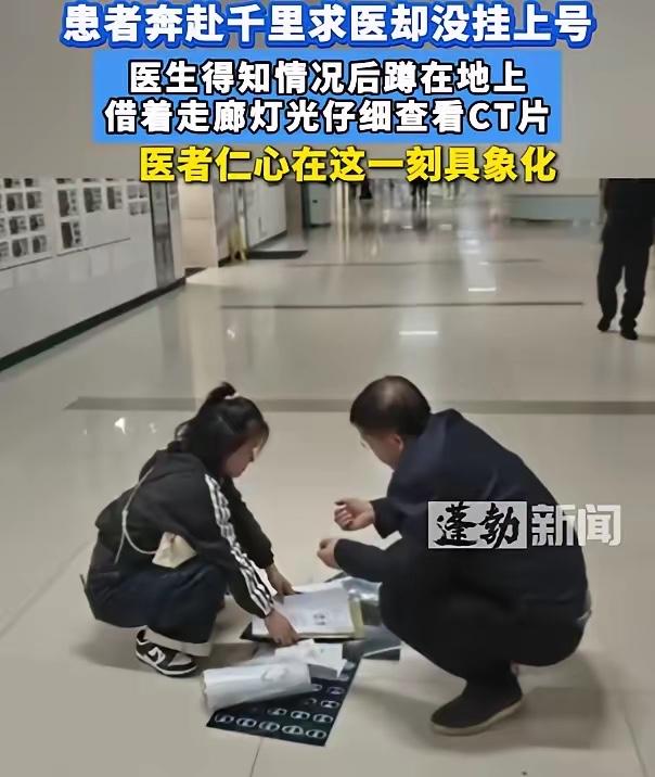 广西女子千里来重庆看病没挂上号, 医生下班后蹲走廊看片, 光线下他手指着CT片说“别怕”。 这件事不是拍电影,也没人喊卡,就是真发生了。 她从广西坐火车来,排到窗口被告知号没了,站那儿手发抖。 戴医生刚换好便装准备走,看见她手里攥着片子,就蹲下来,借着走廊顶灯,一张张翻,边指边讲。 没电脑,没系统,就靠一双眼睛和一张嘴。 这位从广西远道而来的女子,为了看病早已攒了许久的勇气,一路辗转坐了十几个小时的火车,满心期待地赶到重庆这家医院,本想着能得到专业的诊断,却被一句“号已挂满”狠狠浇了冷水。她孤身一人在陌生的城市,举目无亲,手里紧紧攥着的CT片,是她全部的希望,也是她压在心底的担忧,号没挂上的瞬间,无助感瞬间涌上来,手控制不住地发抖,站在医院走廊里进退两难,连眼泪都在眼眶里打转,却又不敢轻易落下,怕自己一崩溃,连最后一点求医的力气都没了。 她就那样孤零零地站着,看着来往匆匆的医护人员和其他患者,心里满是绝望,甚至已经开始盘算,是不是要再坐十几个小时的火车原路返回,白白折腾这一趟,耽误病情不说,心里的委屈更是无处诉说。就在这时,刚结束一天忙碌工作、换下白大褂准备下班回家的戴医生,无意间瞥见了她窘迫又无助的模样。常人忙碌一天后,只想赶紧离开医院休息,可戴医生却停下了脚步,没有丝毫犹豫,径直朝她走了过来。 没有多余的客套,戴医生看着她手里紧紧攥着的CT片,轻声询问了几句情况,得知她千里迢迢从广西赶来却没挂上号,当即决定帮她看看片子。医院走廊里没有专业的观片灯,光线昏暗,根本不适合看医学影像,戴医生便干脆蹲在地上,让女子把CT片一张张展开,借着头顶走廊昏暗的顶灯,眯着眼睛仔细查看。他全然不顾地上的冰凉,也不在意自己已经忙碌一整天的疲惫,手指轻轻指着片子上的病灶位置,一字一句、耐心细致地给她讲解病情,语气温和又坚定,还时不时抬头看着她,轻声说一句“别怕”。 就是这简单的两个字,瞬间戳中了女子内心最柔软的地方,一路的奔波、没挂上号的委屈、对病情的担忧,在这一刻全都有了慰藉。没有专业的医疗设备,没有正规的问诊流程,戴医生就凭着自己多年的从医经验,用最朴素的方式,给这位异乡求医的女子吃下了一颗定心丸。他蹲在走廊里的模样,没有丝毫医生的架子,反倒像一位暖心的长辈,用自己的专业和善良,温暖了一个陌生人的无助时刻。 其实戴医生当天的工作本就十分繁重,门诊坐诊、查房、处理病患问题,从早忙到晚,早已身心俱疲,原本可以按时下班回家休息,可他却选择多停留这几分钟,为一个素不相识的患者排忧解难。这看似微不足道的举动,背后藏着的是医者最珍贵的仁心,是刻在骨子里的责任感。在当下快节奏的社会里,很多人都在计较得失、讲究流程,可戴医生却打破了刻板的规则,用最纯粹的善意,诠释了什么是医者仁心。 这件事被路过的人拍下来传到网上后,瞬间引发了无数网友的共鸣,大家纷纷为戴医生点赞,评论区里满是温暖的留言。有人说“这才是真正的好医生,医术重要,医德更重要”,也有人回忆起自己异地求医的无助经历,感慨这样的温暖太珍贵。我们总说医者父母心,戴医生的举动,就是这句话最真实的写照,他没有惊天动地的壮举,只是在别人需要的时候,伸出了一双援手,用蹲在走廊里的几分钟,照亮了异乡患者的求医路。 反观当下,偶尔会有医患矛盾的新闻出现,让不少人对医患关系产生误解,可戴医生这样的举动,却让我们看到,医患之间本就该是这样彼此信任、彼此温暖的关系。医生的职责是救死扶伤,而这份职责,从来都不只局限在诊室里、手术台上,更藏在这些不经意的善意瞬间里。这位广西女子千里求医的不易,戴医生下班之余的暖心相助,没有剧本,没有摆拍,却比任何影视剧都更打动人心,因为这是最真实的人间温情。 各位读者你们怎么看?欢迎在评论区讨论。
